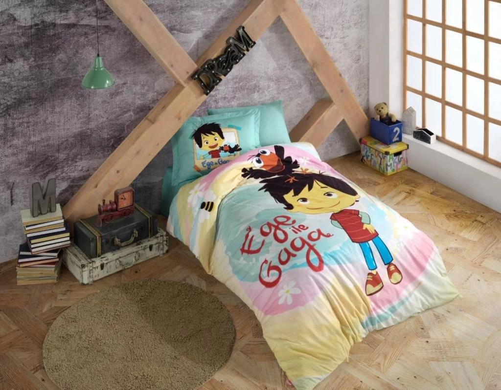 Hobby Lisanslı Ege ile Gaga 01 Tek Kişilik Poplin Nevresim Takımı