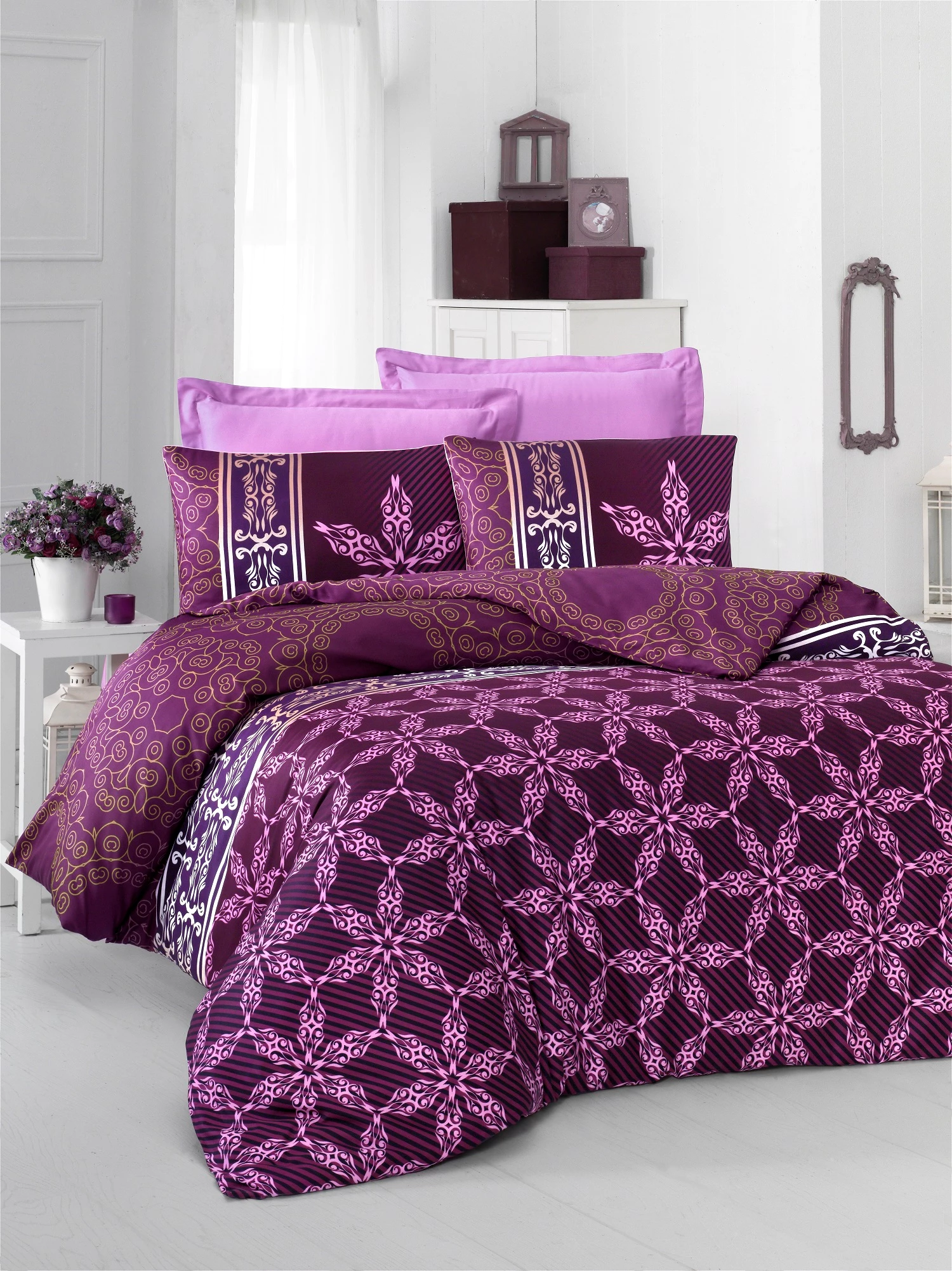 Komfort Home Çift Kişilik Exclusive Deluxe Saten Nevresim Takımı (Lilac) Renkli