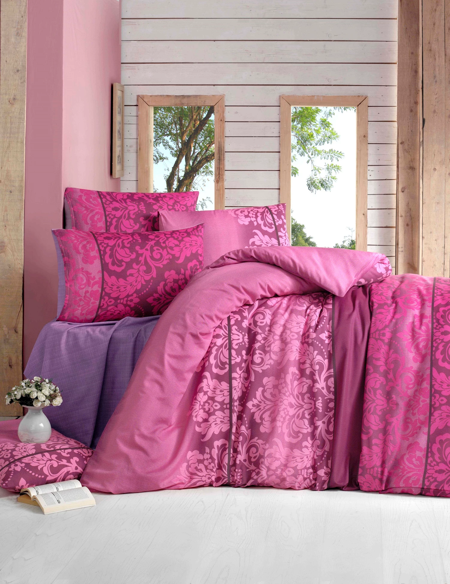 Needion - Komfort Home Çift Kişilik Polycotton Nevresim Takımı (Öykü Bordo) Renkli
