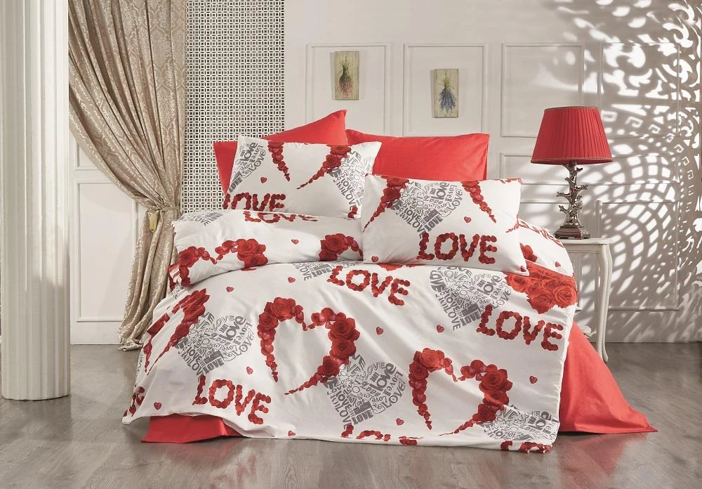 Nevresim Dünyası Tek Kişilik Ranforce Nevresim Takımı Love Kırmızı
