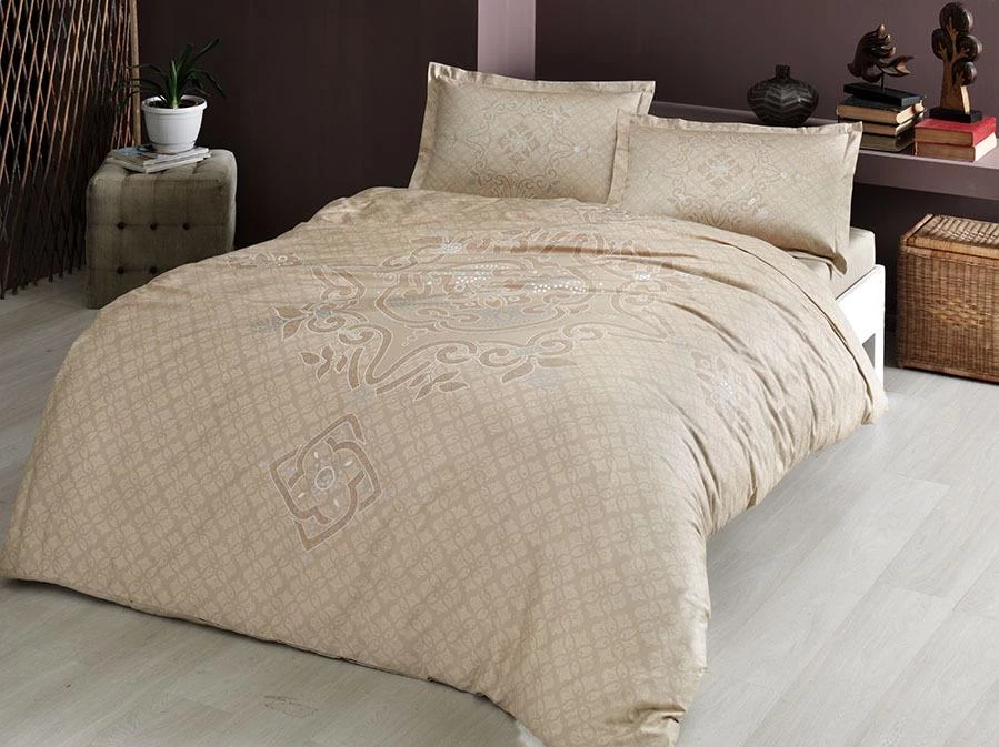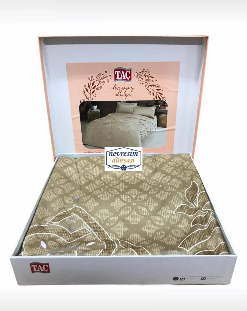 Taç Çift Kişilik Saten Nevresim Takımı Bruna Kahve