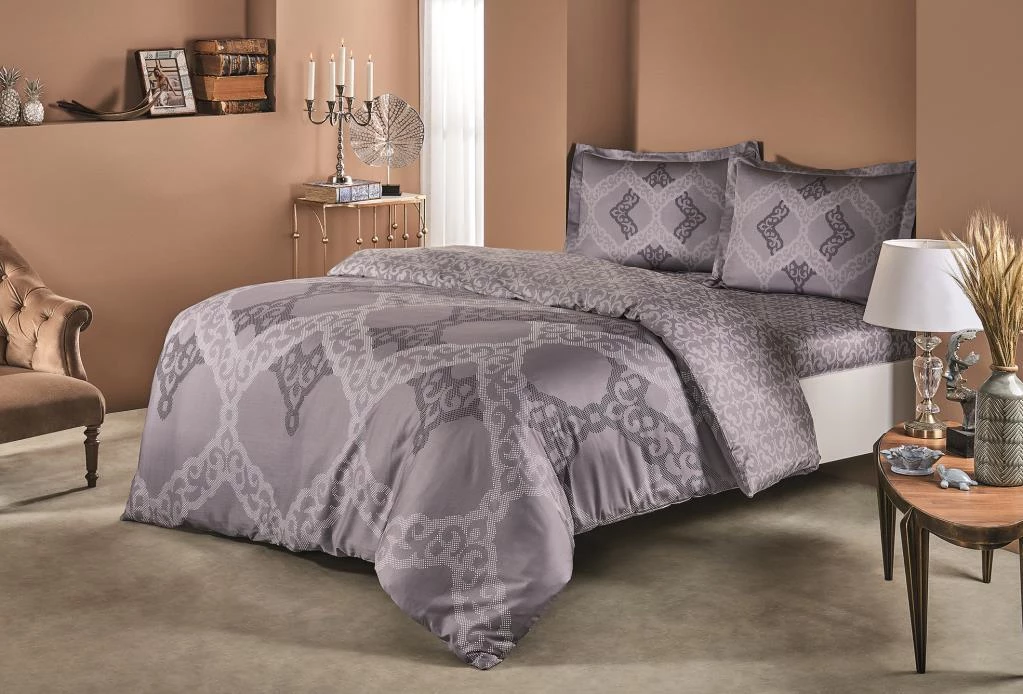 Needion - Taç Çift Kişilik Saten Nevresim Takımı Corette Gri