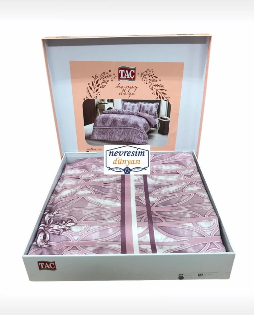 Taç Çift Kişilik Saten Nevresim Takımı Elise Pembe