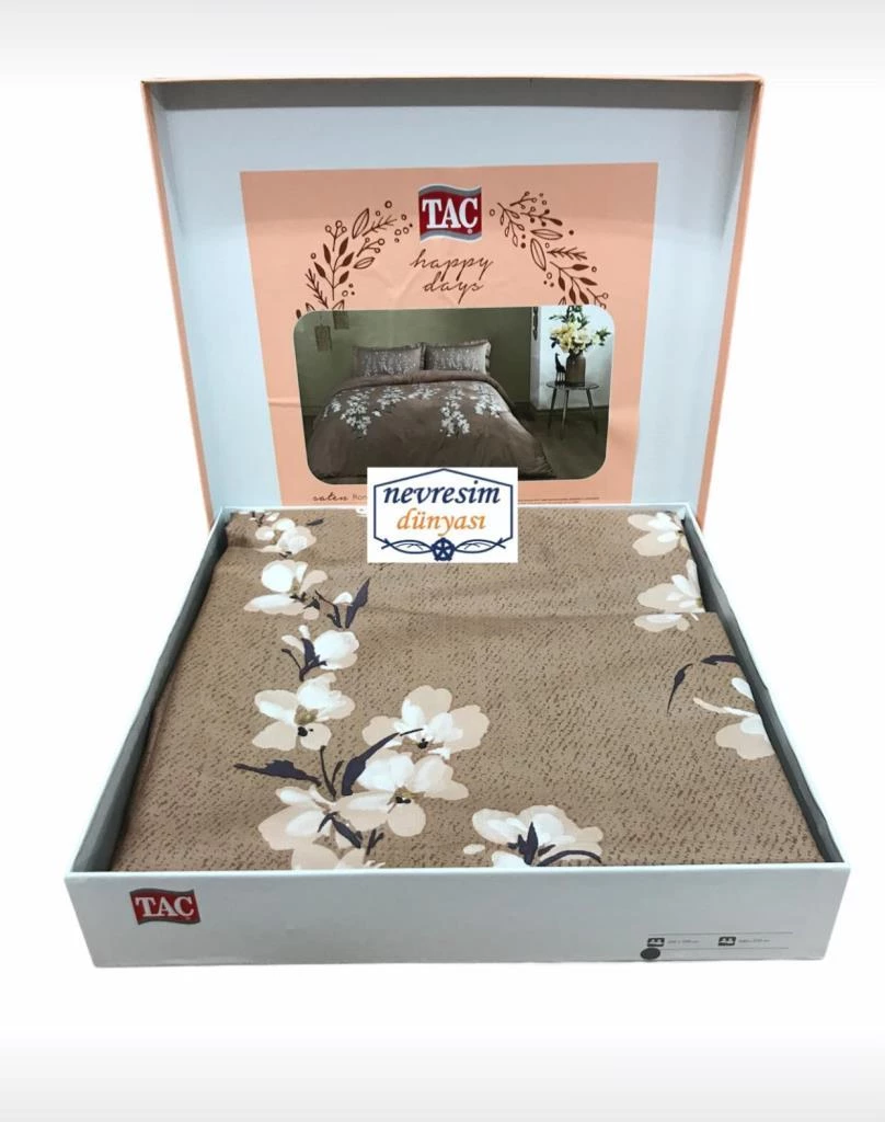 Taç Çift Kişilik Saten Nevresim Takımı Ronna Kahve