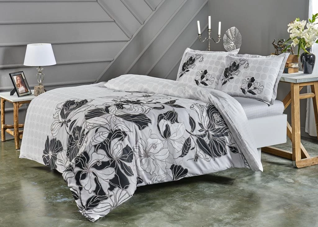 Taç Çift Kişilik Saten Nevresim Takımı Sharon Gri