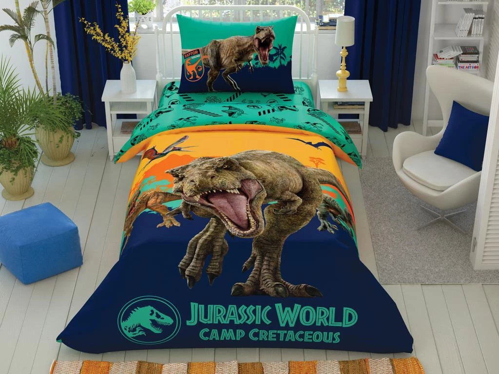 Taç Lisanslı Tek Kişilik Nevresim Takımı Jurrasic World Camp