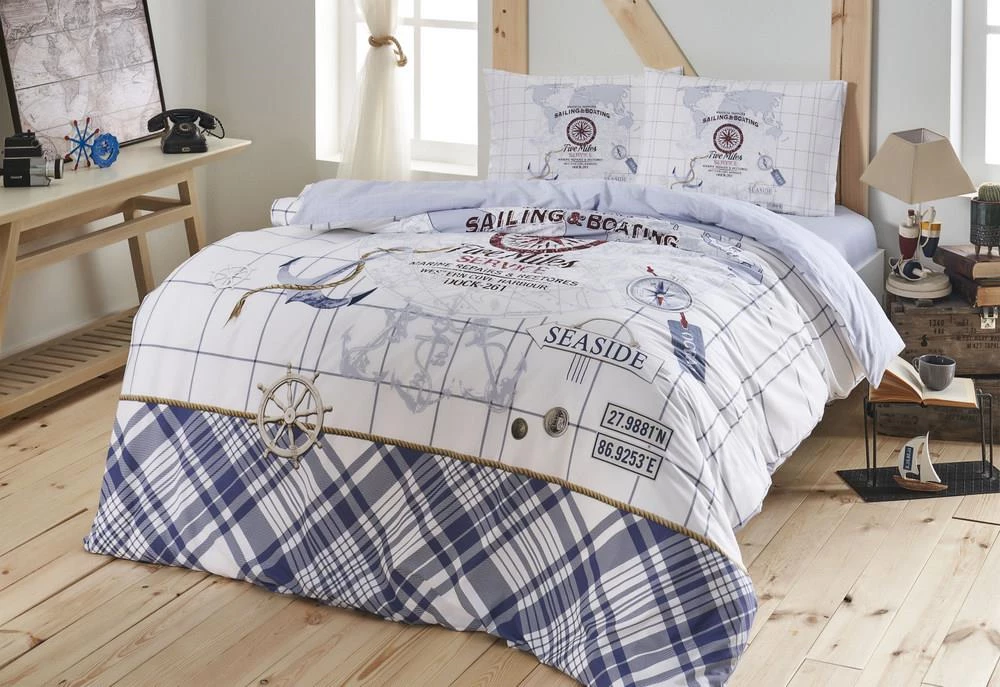 Taç Ranforce Tek Kişilik Nevresim Takımı Sea Side Mavi