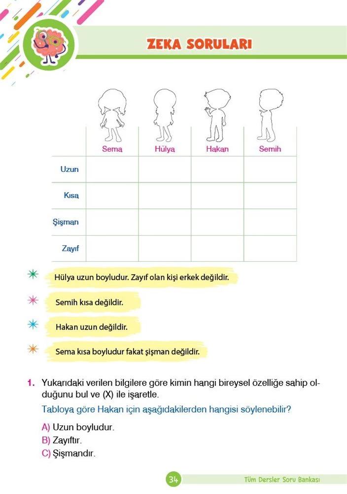 Bilsem ve Zeka Sorularıyla desteklenmiş 2. Sınıf Tüm Dersler Yeni Nesil Soru Bankası