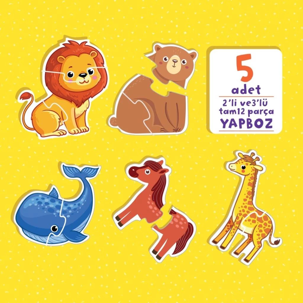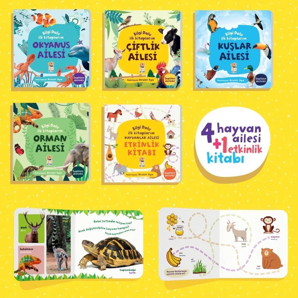 5 kitap + 5 puzzle + 70'e yakın hayvan görseli ve interaktif etkinlikler "Bilgi Dolu İlk Kitaplarım Hayvanlar Ailesi'nde."