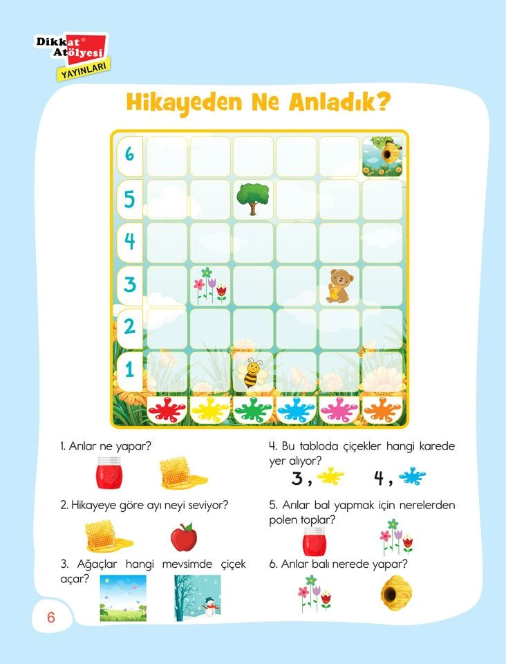Algoritma çalışmaları, çocuklarda yer yön kavramı ve matematiksel beceriyi geliştirir. Kitaptaki hikayeler, kodlama yaparken çocukların olayları zihninde canlandırmasına, bunun yanı sıra hem işitsel algılarını hem de mekansal hayal güçlerini geliştirmesine destek olur. Dikkat Atölyesi Yayınları kitapları, çocuğunuzla bağ kurmanın, onlarla eğlenceli vakit geçirmenin en kolay yolu.