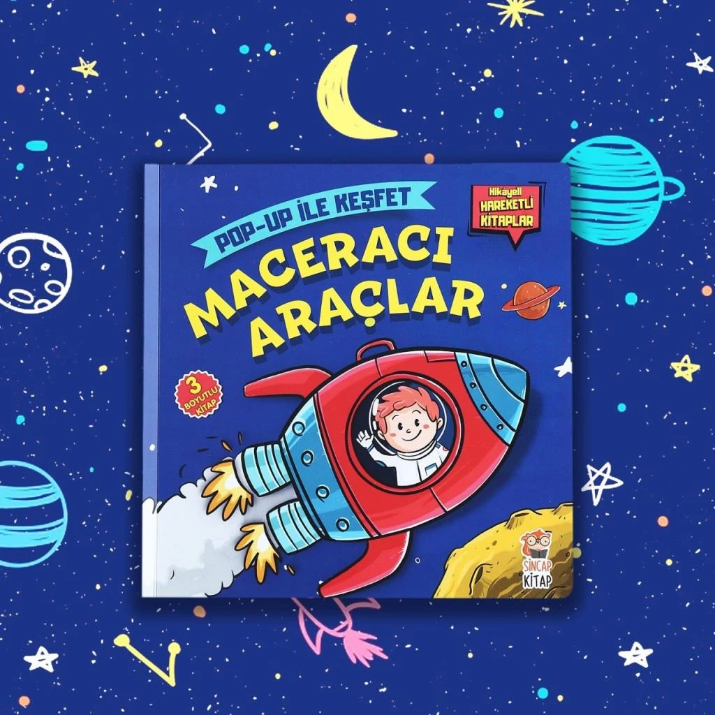 Maceracı araçların hayal dünyalarına bir yolculuk yapmaya ne dersin? Hareketli kitabımızda, sürprizlerle dolu açılan pencere ve pop-up eğlencesiyle, hayaller kuran beş arkadaşın neşeli hikayeleri seni bekliyor.