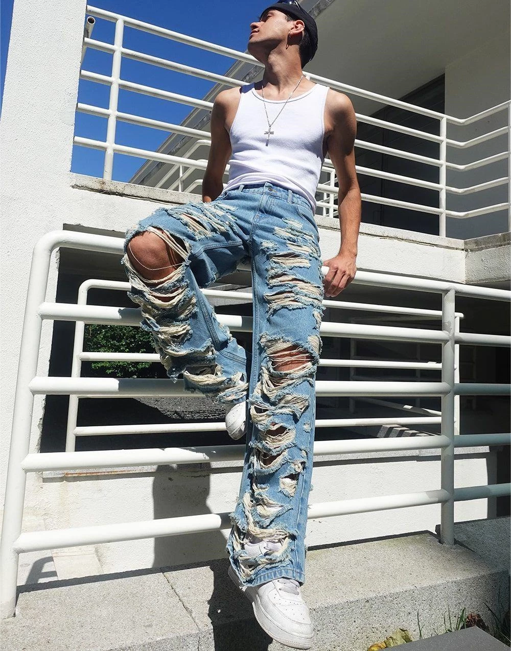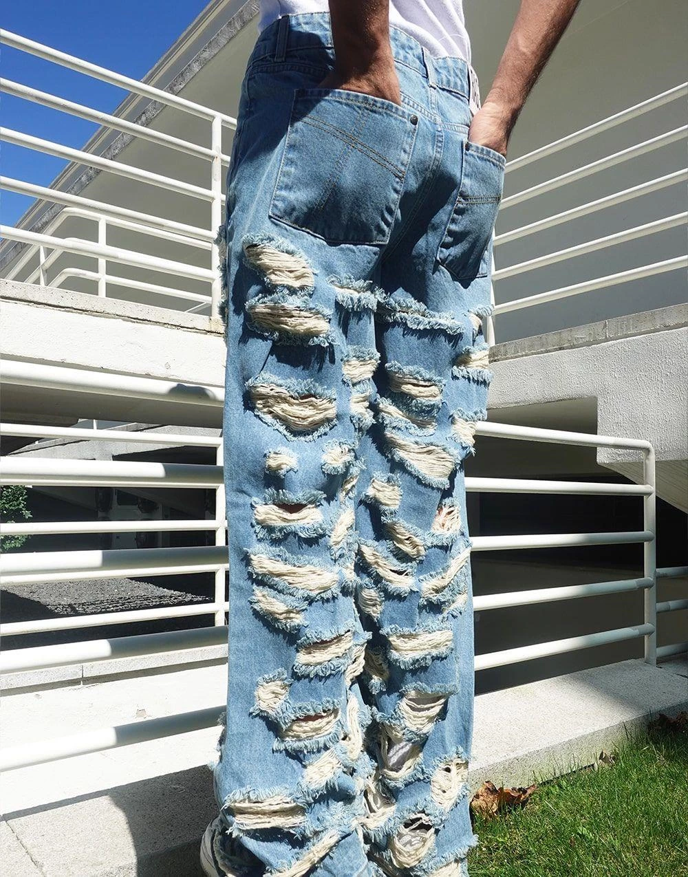 Needion - Premium Baggy Distressed Kot Pantolon Mavi 28 Mavi