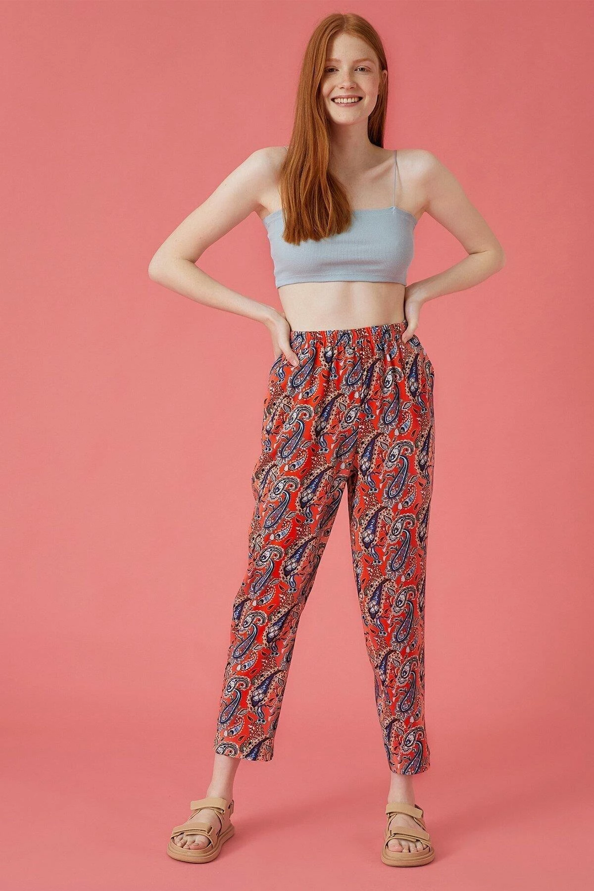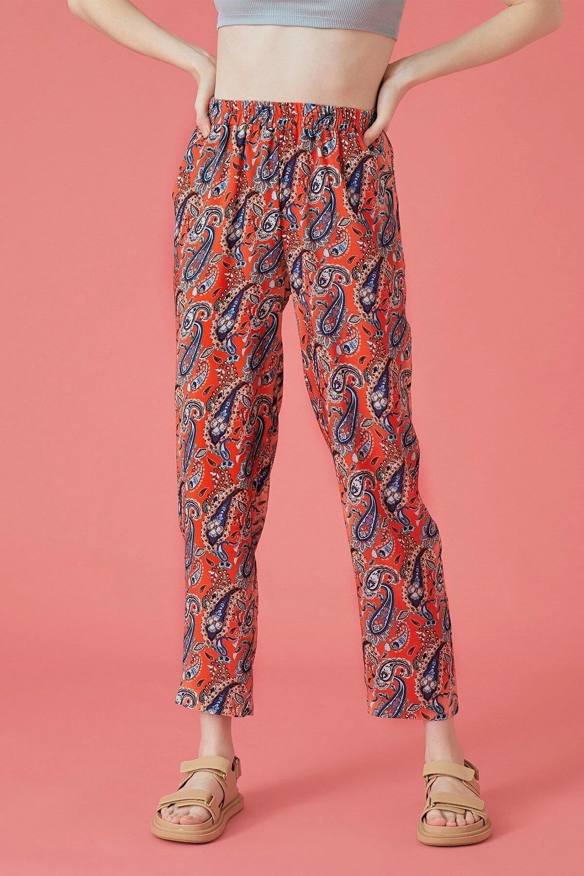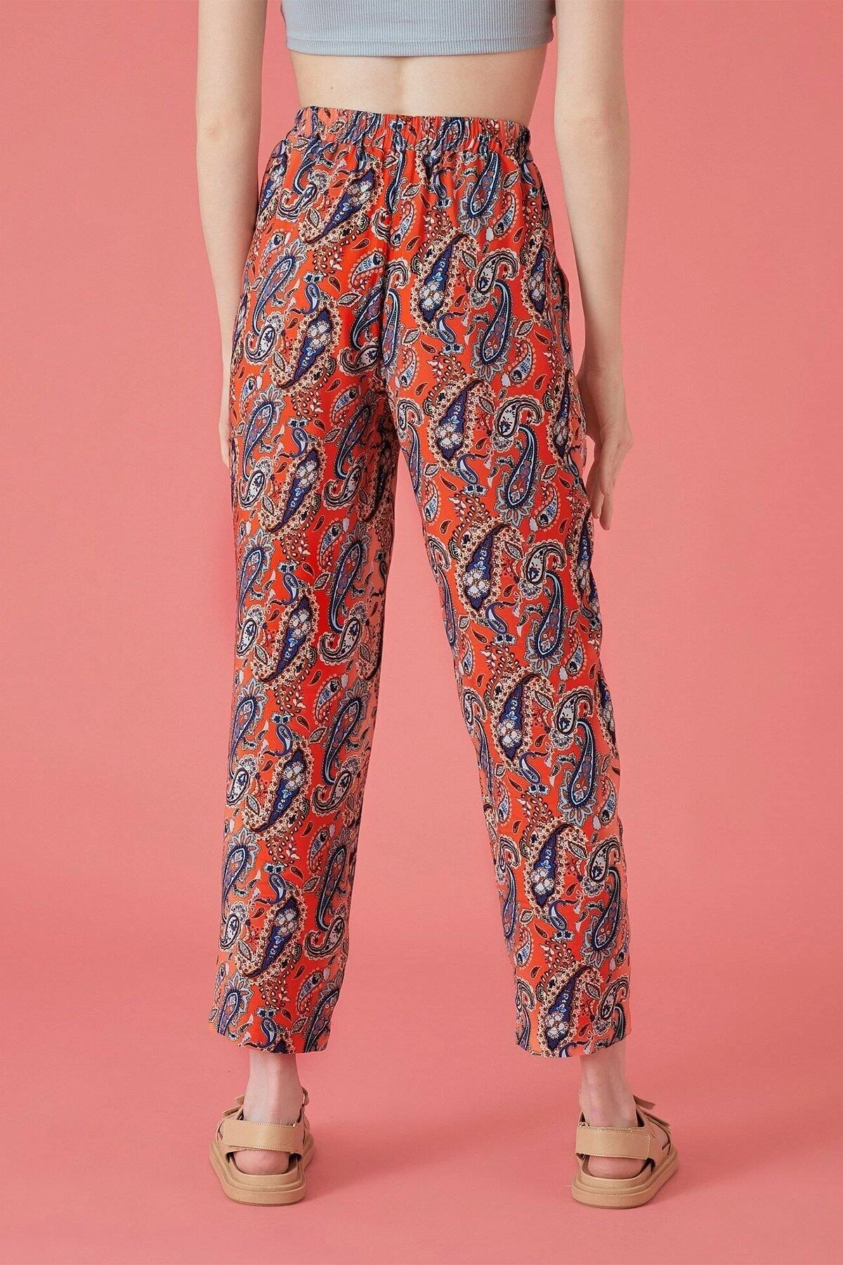 Needion - Koton Kadın Kırmızı Desenli Pantolon 1yal48050ıw Kırmızı/01P 38