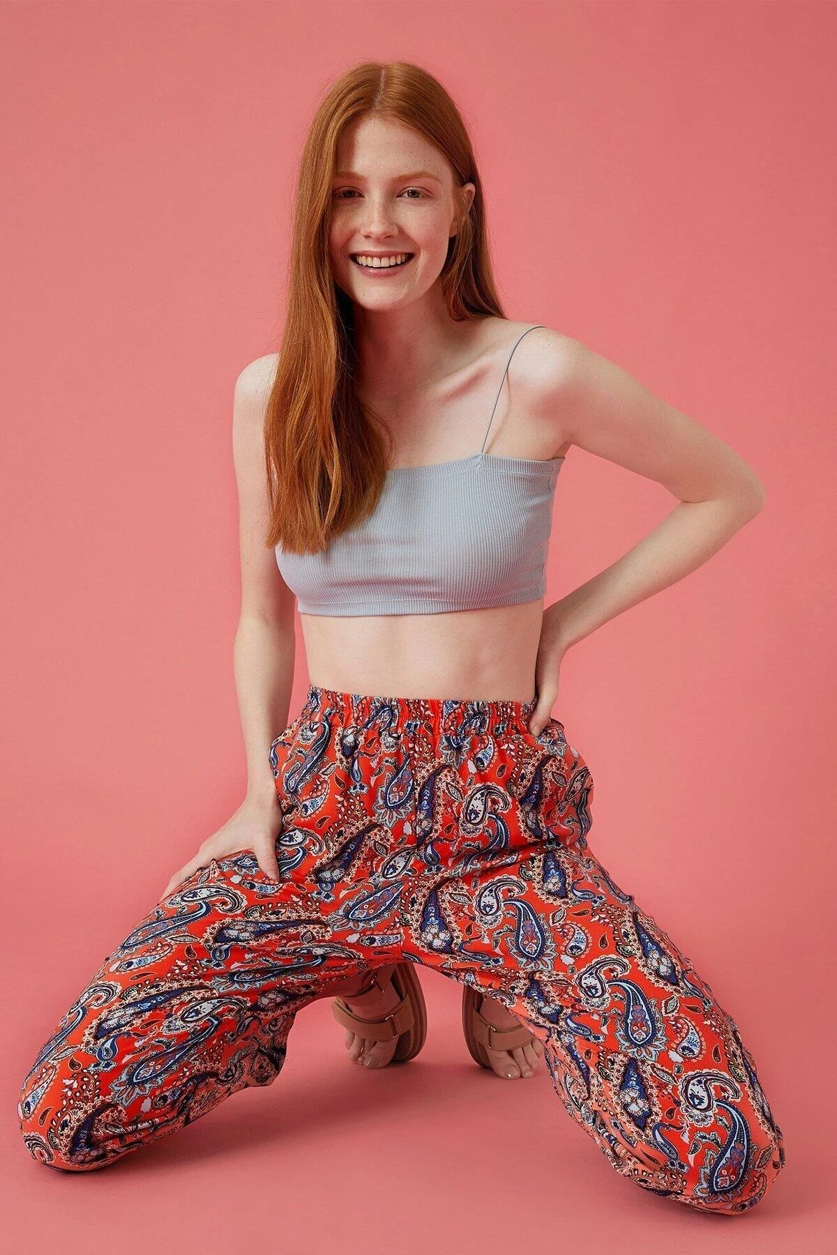 Koton Kadın Kırmızı Desenli Pantolon 1yal48050ıw