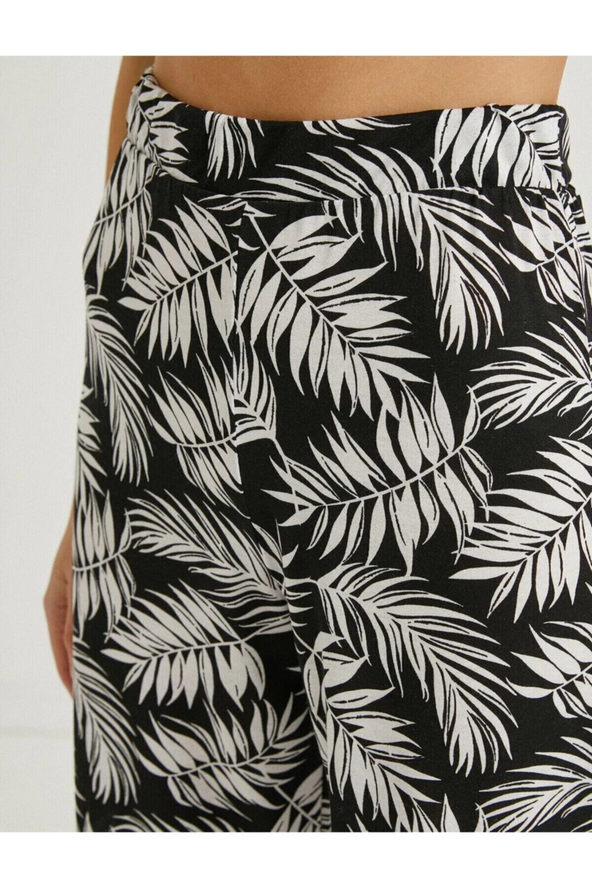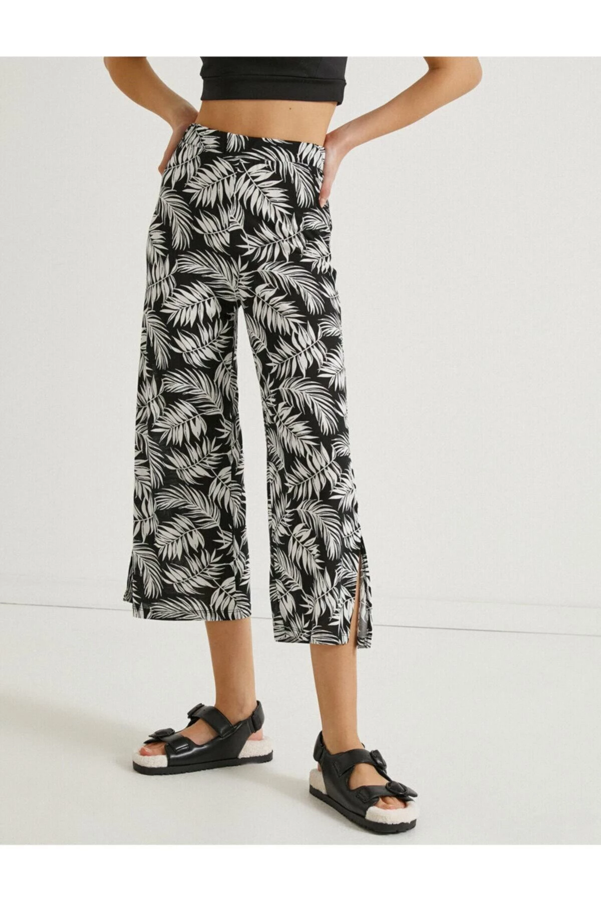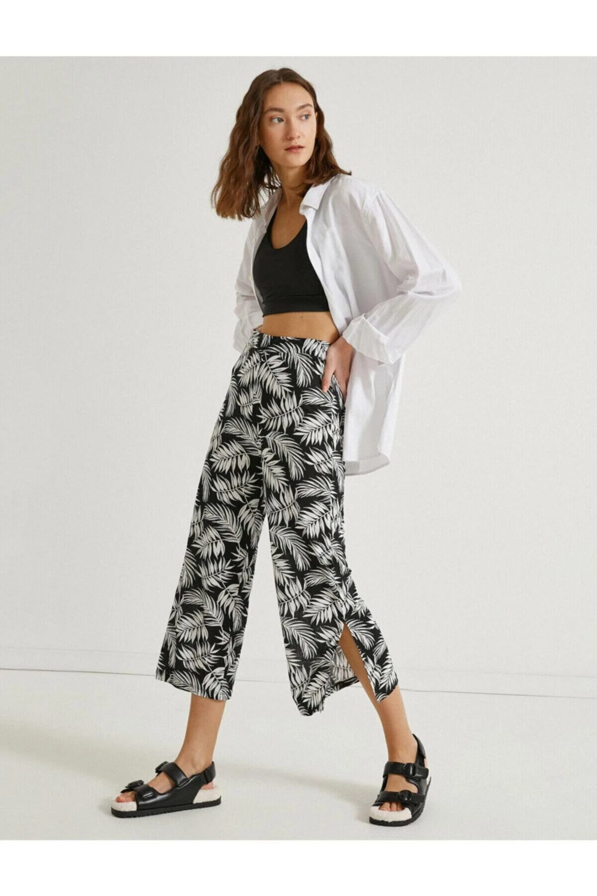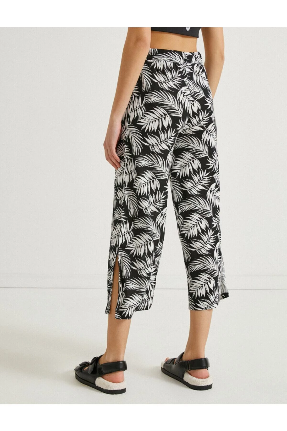 Koton Kadın Siyah Yırtmaç Detaylı Çiçekli Pantolon SİYAH S