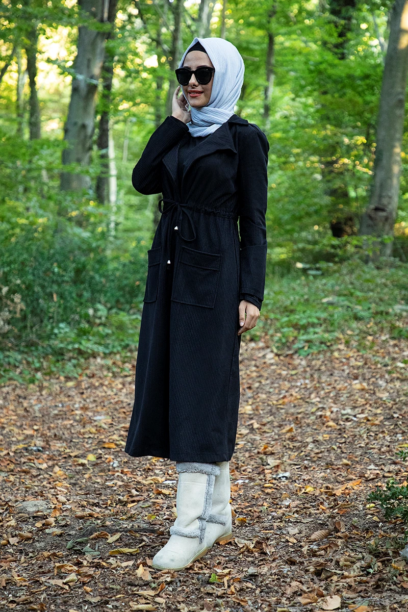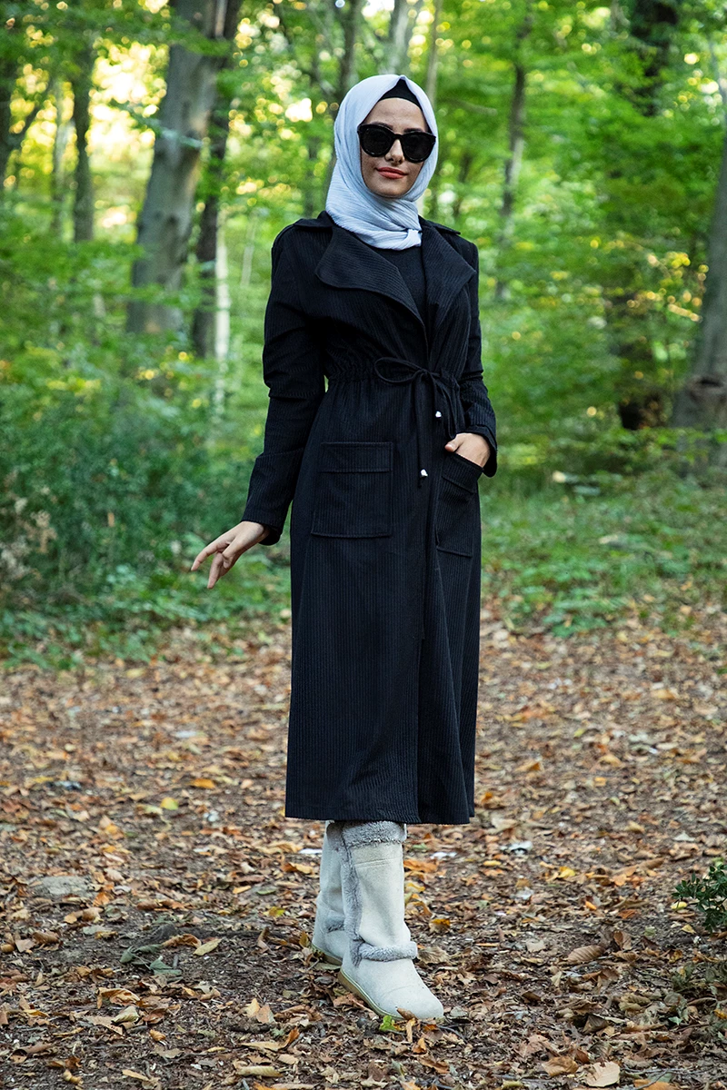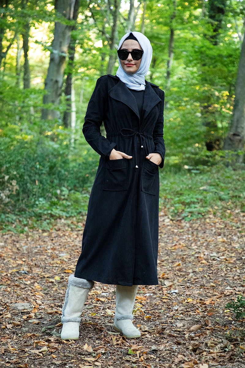 Ürünümüz ceket yaka önü açık olarak üretilmiştir.Belde gizli büzgü detayı bulunmaktadır.Ürünün ön kısmında cep detayı mevcuttur.Kadife kumaştan üretildiği için sonbahar kış sezonunun  trend ürünüdür.Tam kalıp olup, astarsızdır.