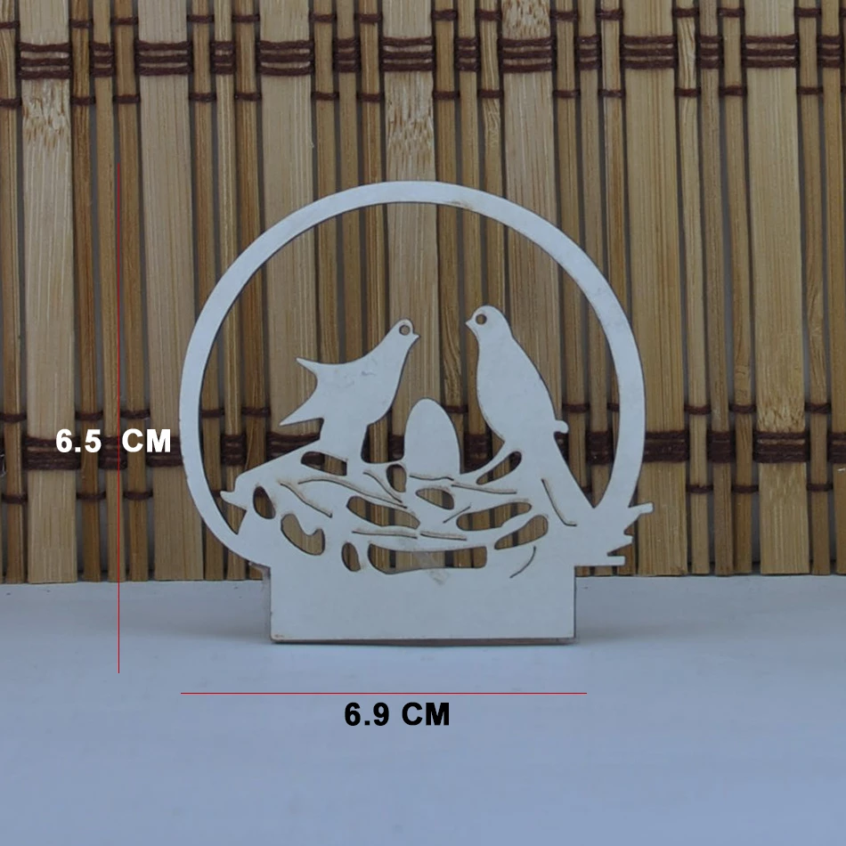 Needion - Ahşap Çift Kuşlu Çember İçinde Lazer Kesim Obje (20 Adet)