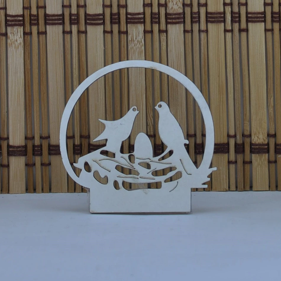 Ahşap Çift Kuşlu Çember İçinde Lazer Kesim Obje (20 Adet)