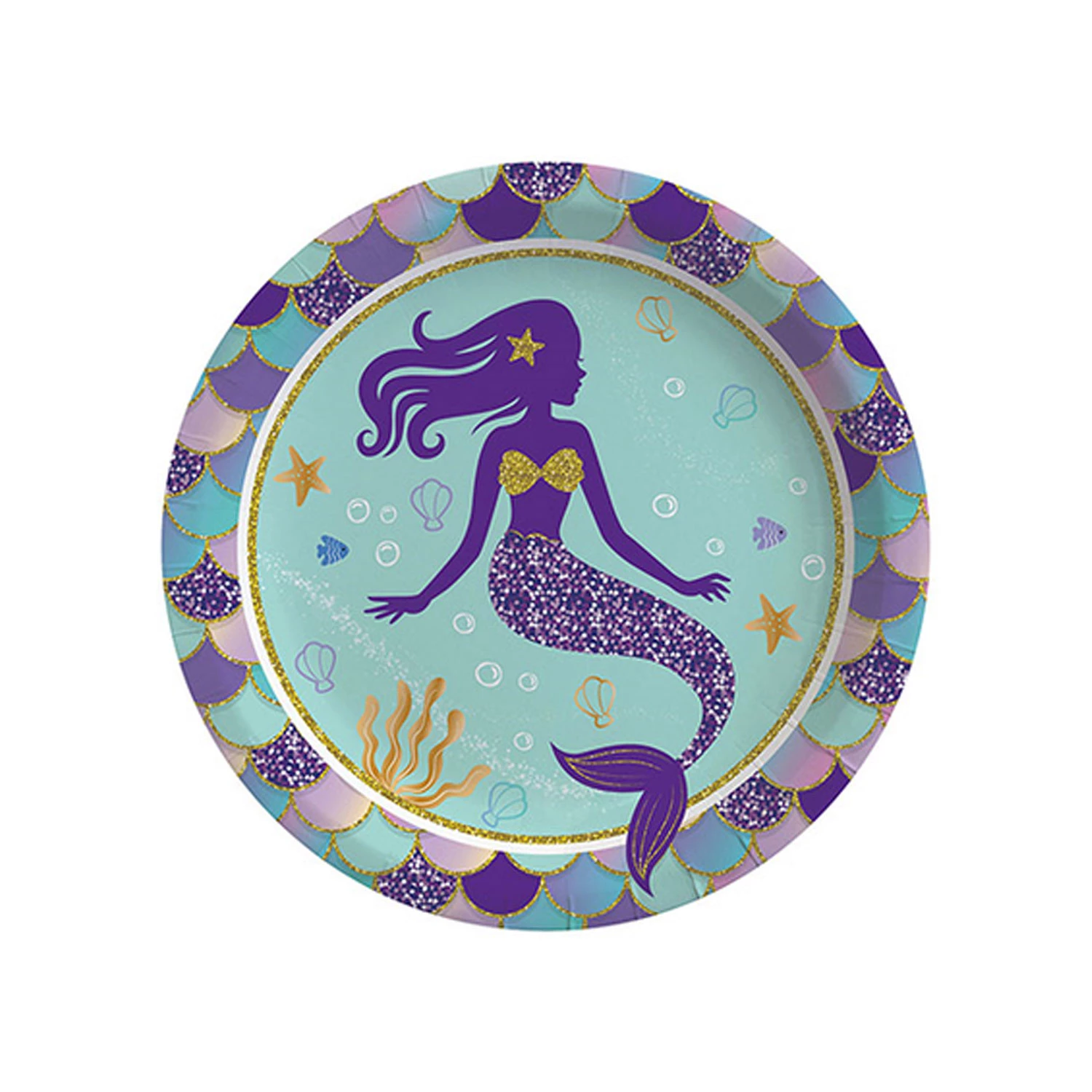 Deniz Kızı Temalı Pırıltılı Karton Tabak 23 CM (8 Adet)
