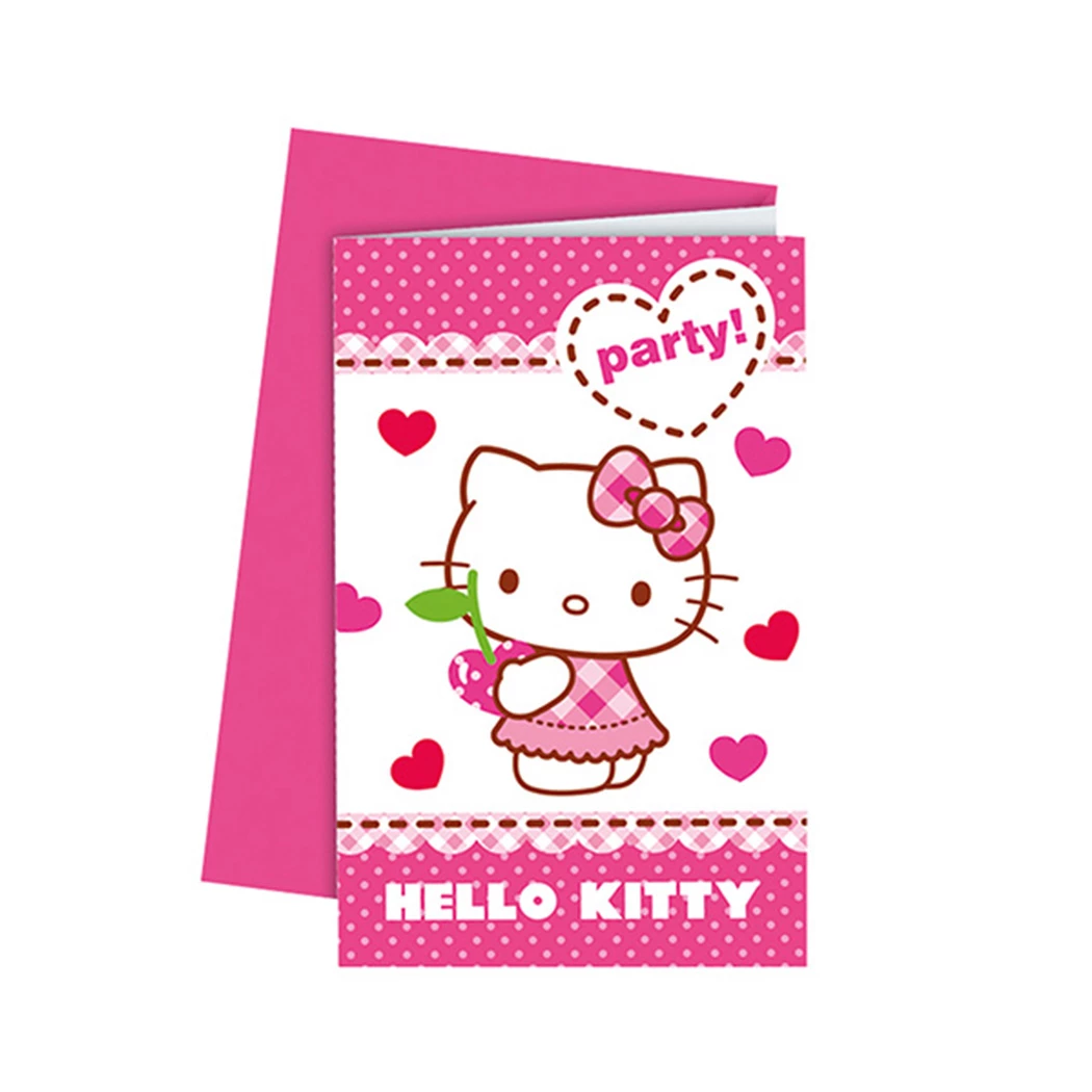 Needion - Hello Kitty Temalı Kalpler Parti Davetiyesi (6 Adet)