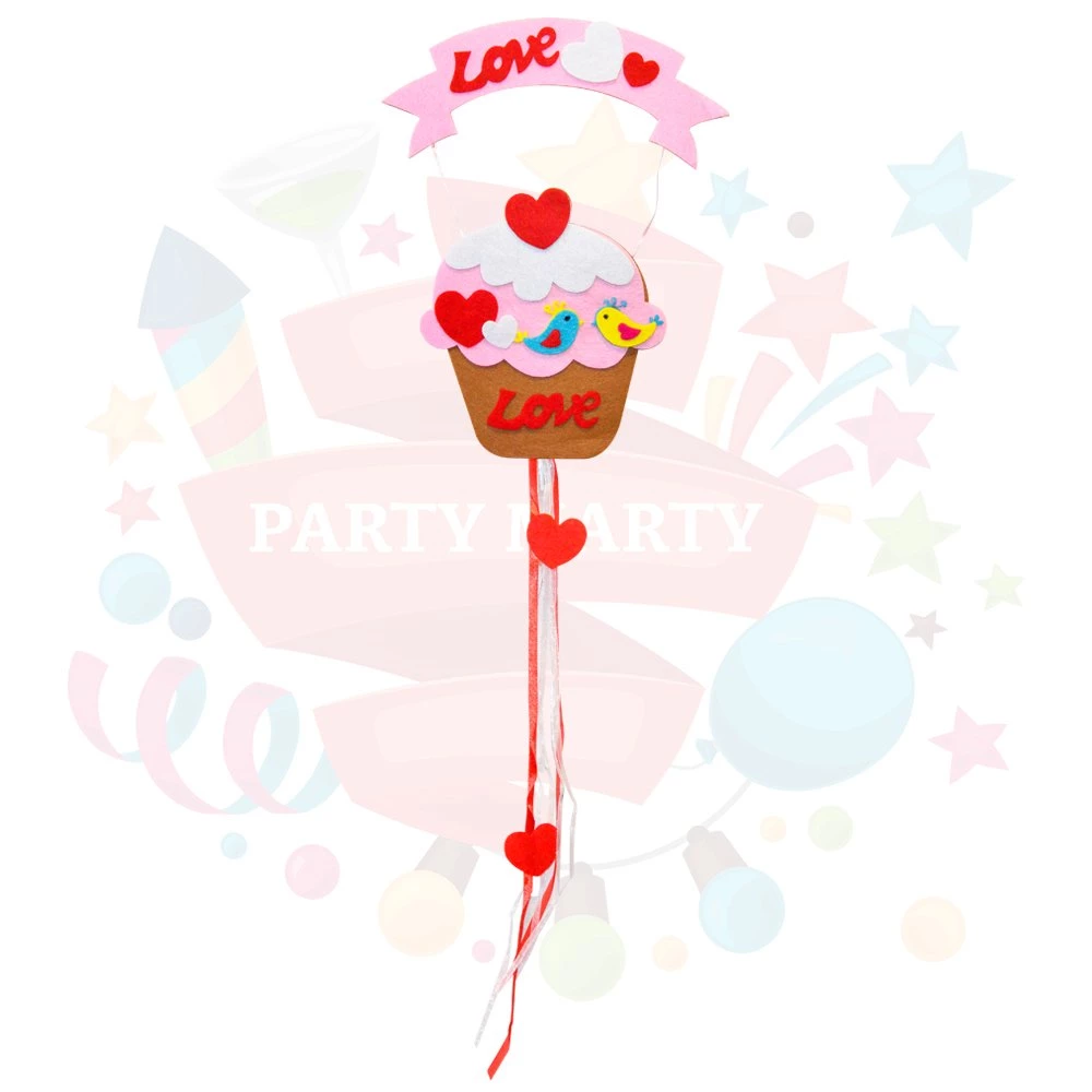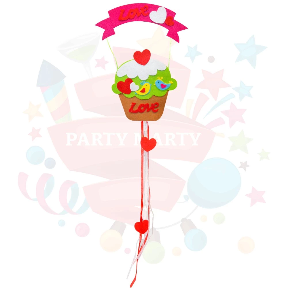 "Keçe Cupcek Askılı Duvar Süsü " ürünümüz herkesin beğenisini kazanacak şekilde tasarlanmıştır. Parti konseptlerinizi tamamlayıcı dekorasyon ürünlerimiz dendir. Ürünümüz keçe malzemeler lazer kesim de kesilerek, birbirlerine yapıştırılarak hoş bir asma süs elde edilmiştir. Asma kısmında saten ve organze kurdele kullanılmıştır, üzerine keçeden kalpler yapıştırılmıştır.