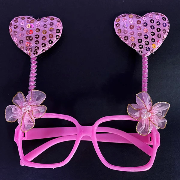 Pembe Renk Kalp Figürlü Camsız Metalize Parti Gözlüğü