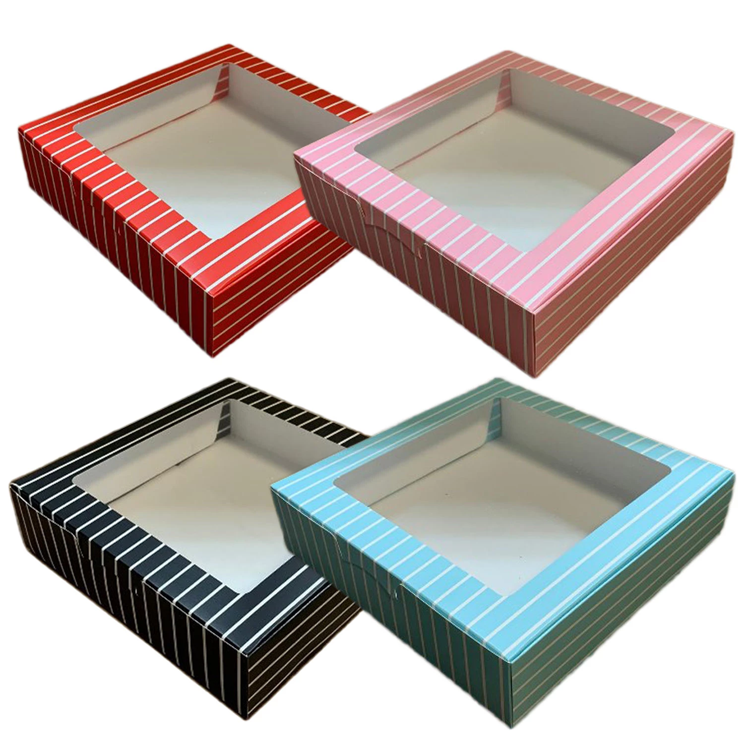 Pencereli Karton Kutu Çizgili Model 20X20X5 CM (10 Adet) Mavi