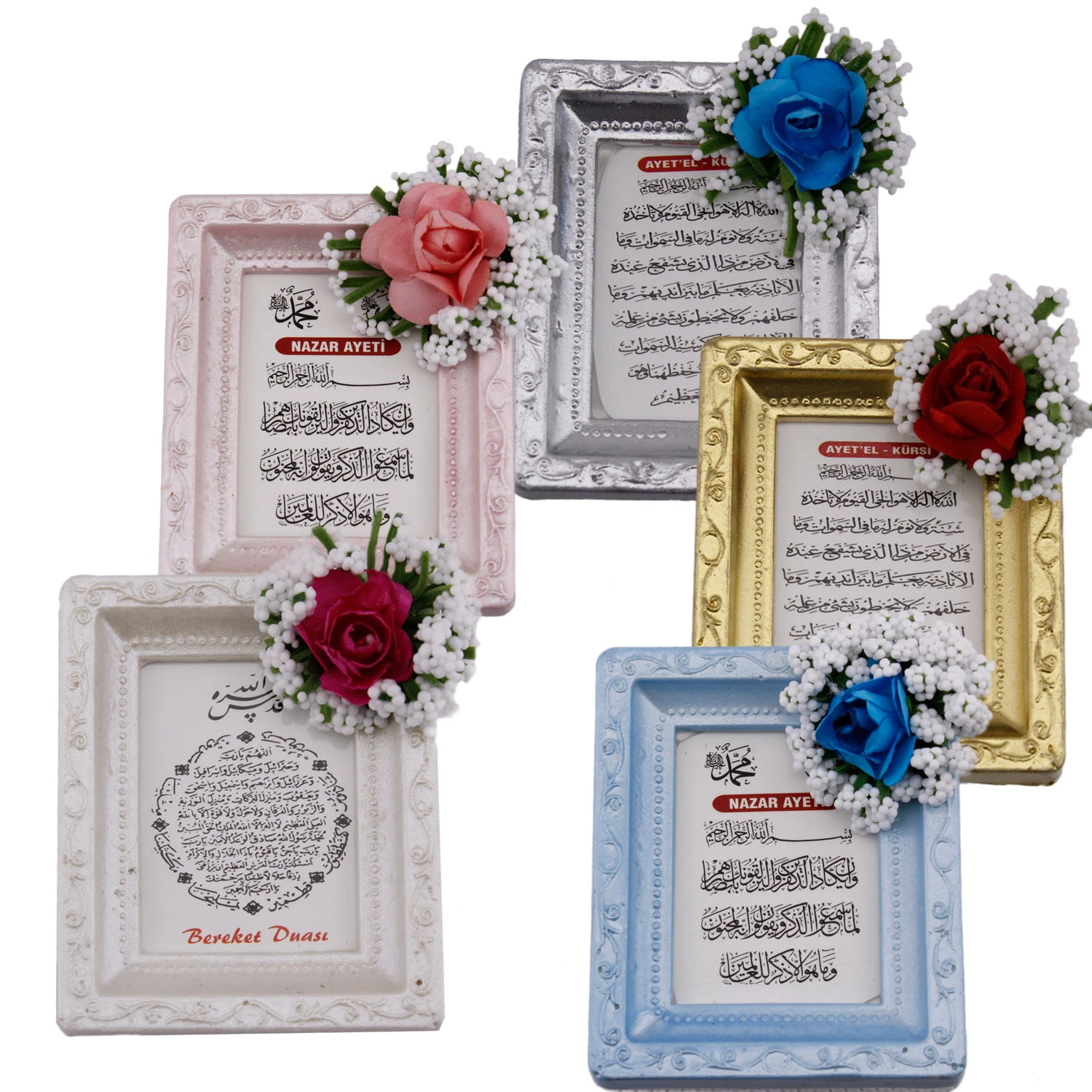 Polyester Ayet Magnetli Çerçeve Mıknatıslı Ayetli Süslü (50 Adet) Gold