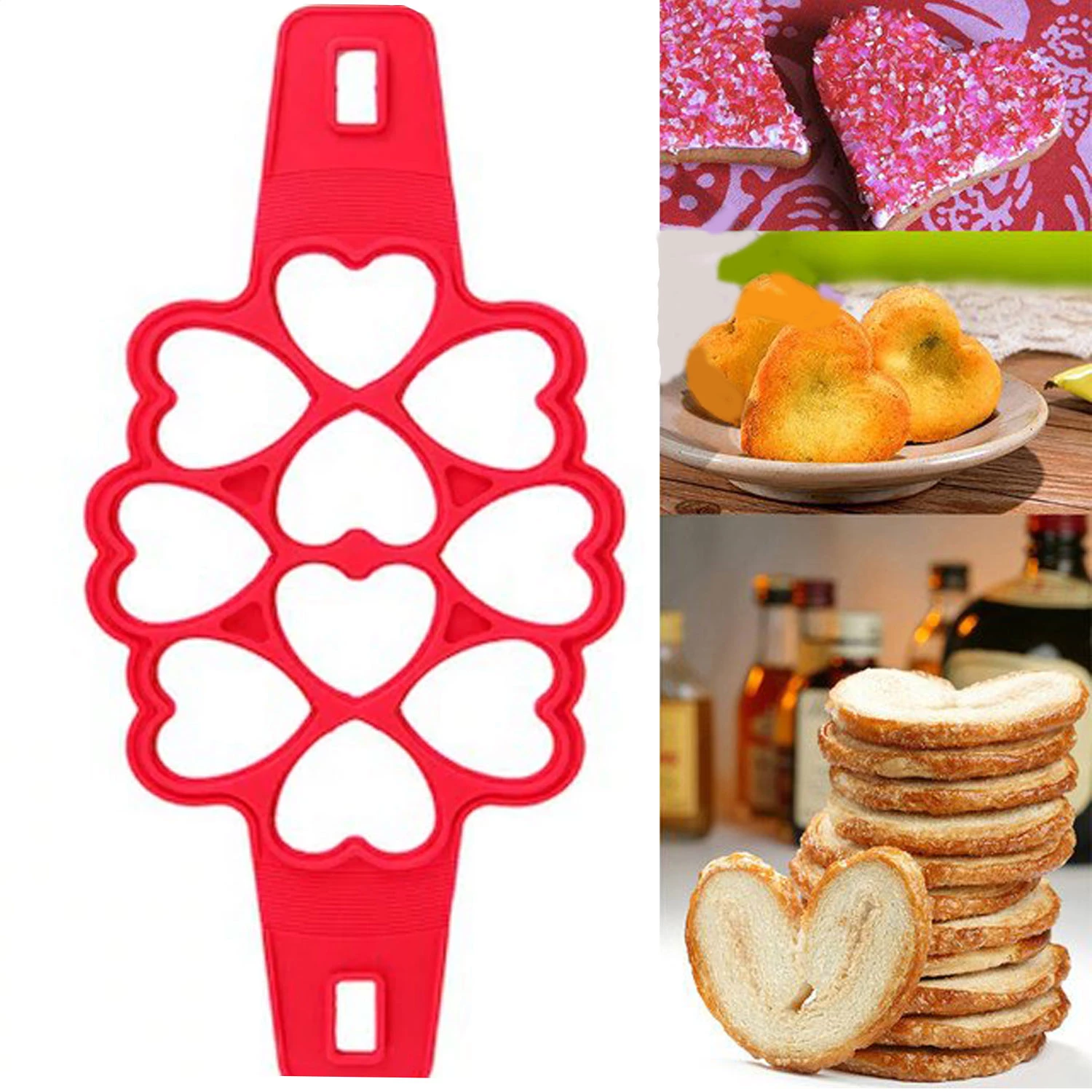 Needion - Silikon Pankek Kalp Bölmeli Krep Pişirme Kalıbı 10 lu