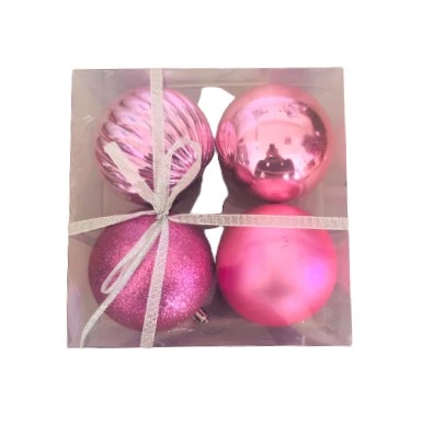 YILBAŞI TOP AĞAÇ SÜSÜ PEMBE 4'LÜ SET PLASTİK 10CM