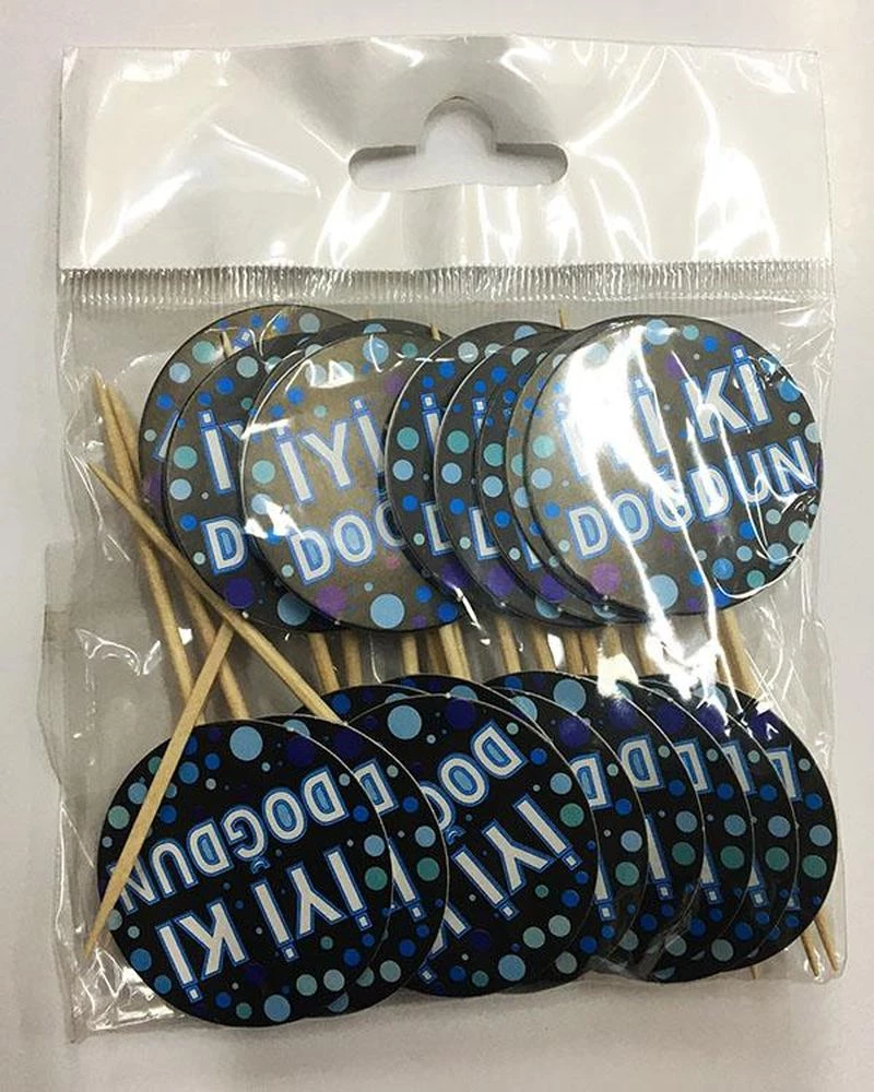 Needion - Siyah Mavi İyiki Doğdun Parti Kürdan Süsü 20 Adet