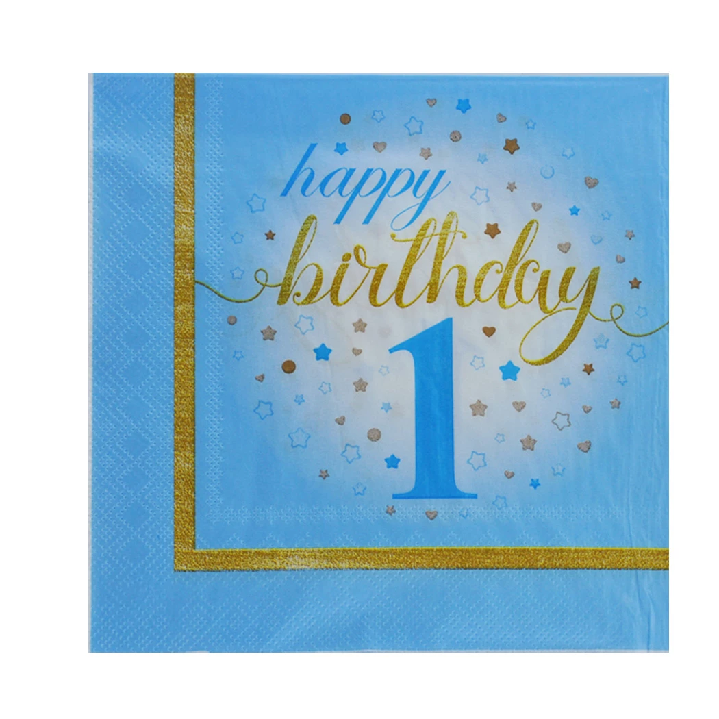 Needion - Kağıt Peçete 1 Yaş Happy Birthday Yıldızlı (20 Adet) Mavi