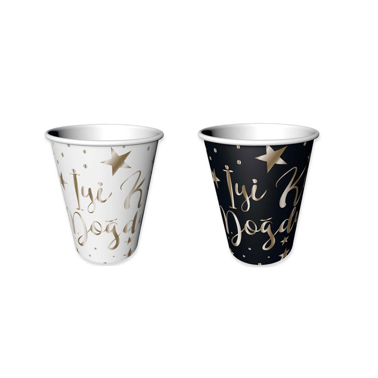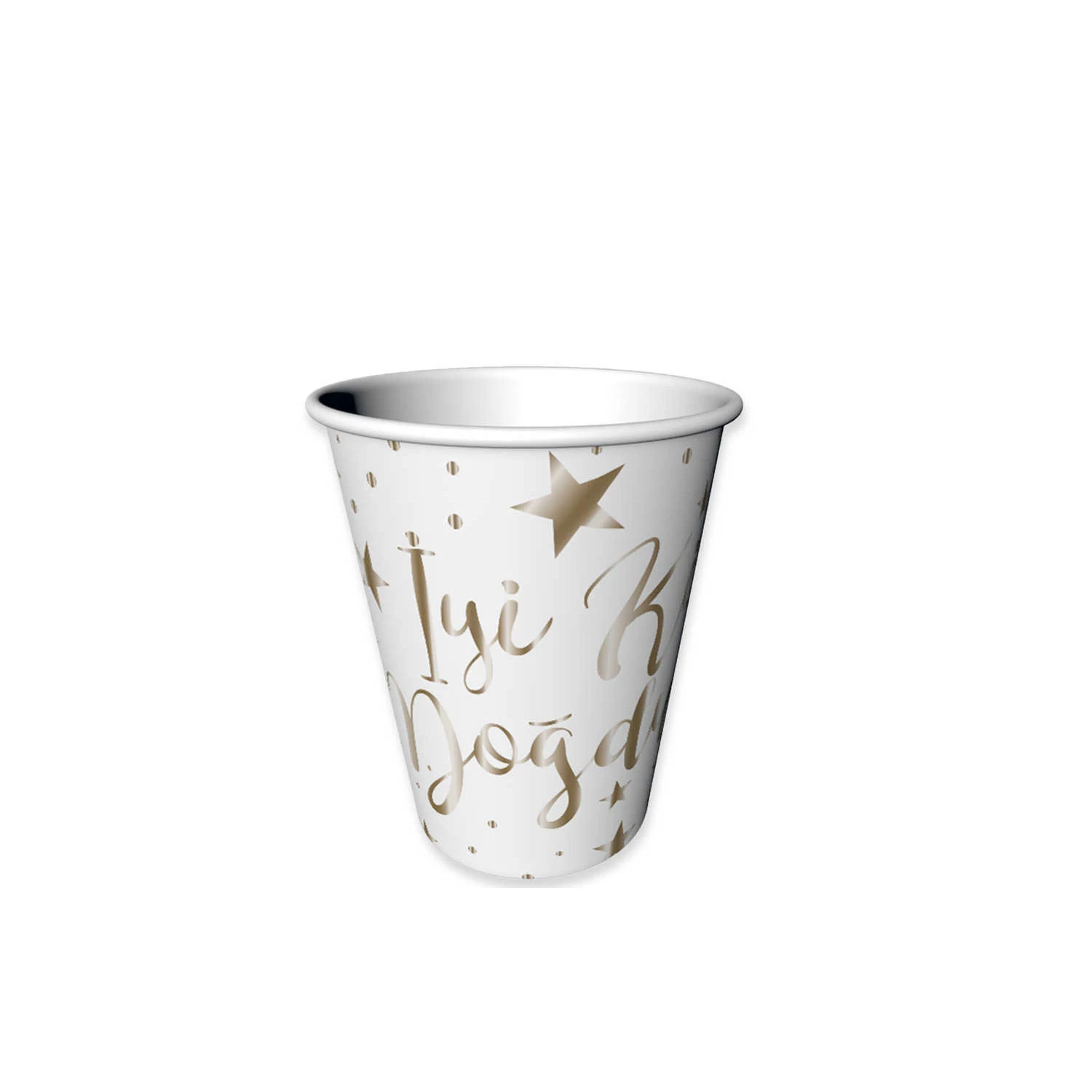 Karton Bardak Gold Varak Baskılı İyiki Doğdun (6 Adet) Beyaz