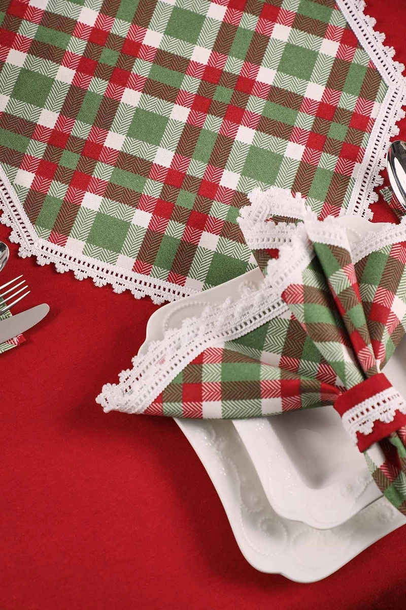 Needion - Dantelli Kumaş Peçete 2 li Ekose