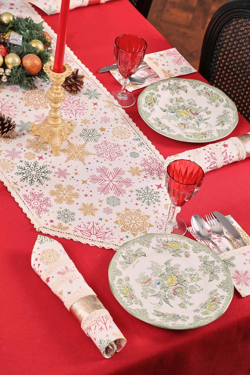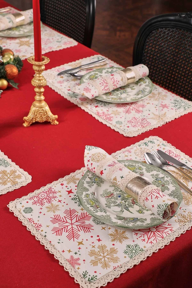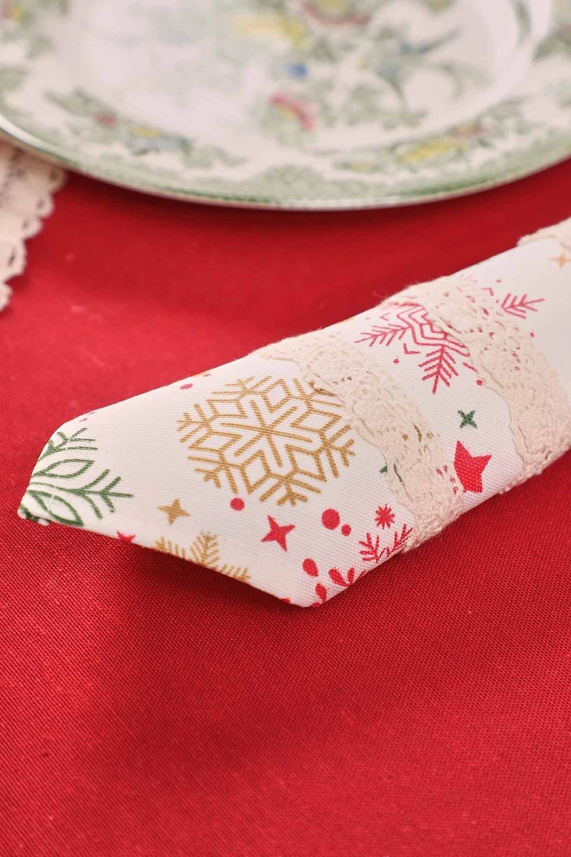 Needion - Dantelli Kumaş Peçete 4 lü Yıldız Desen