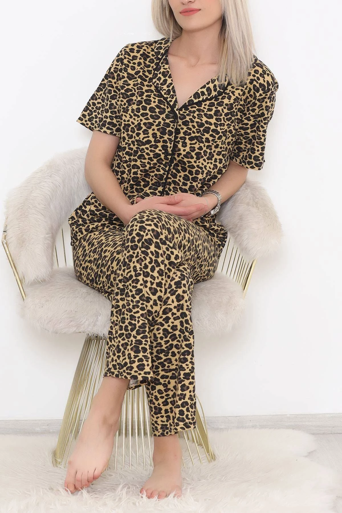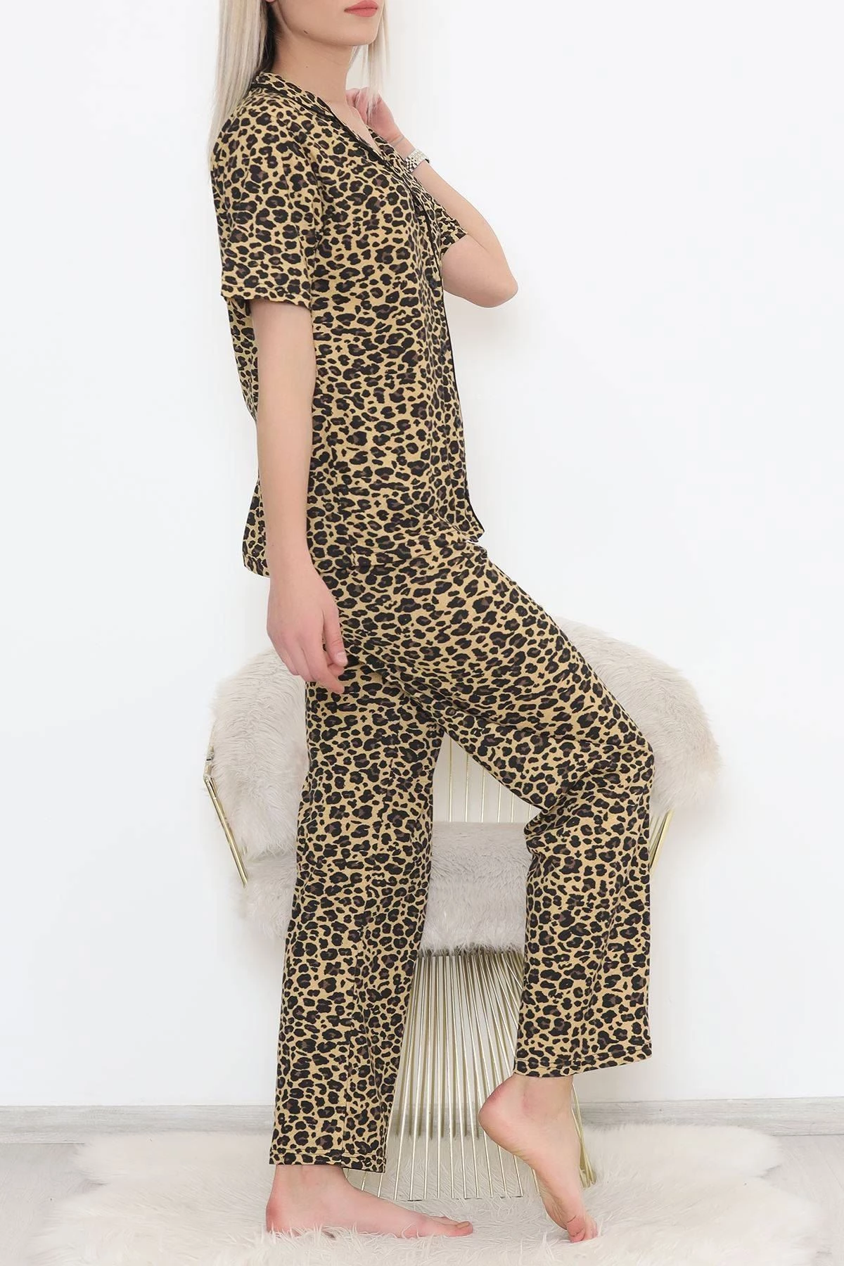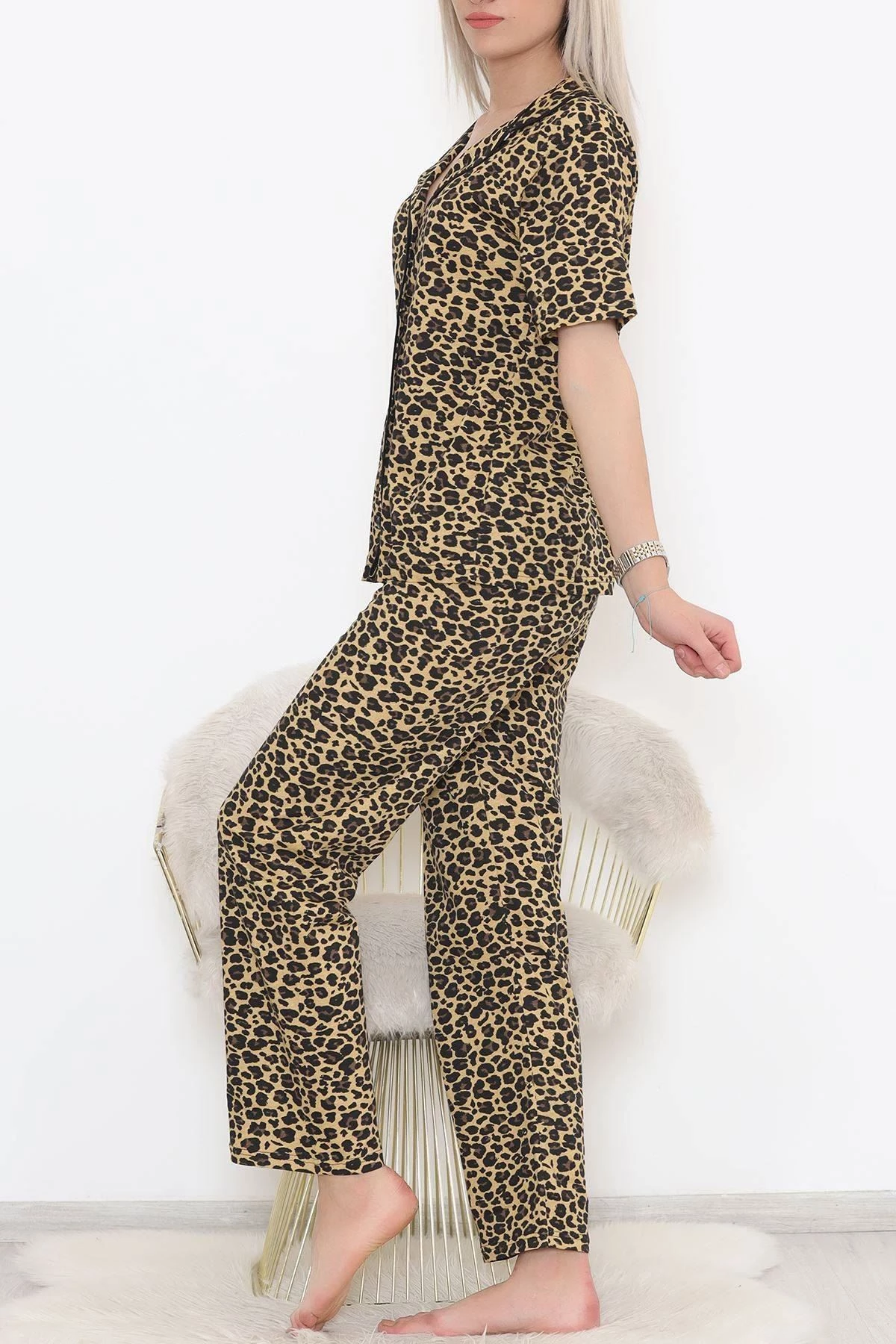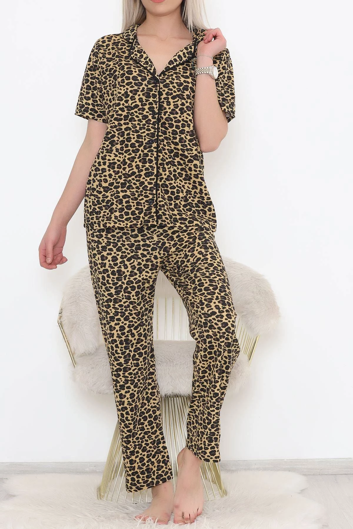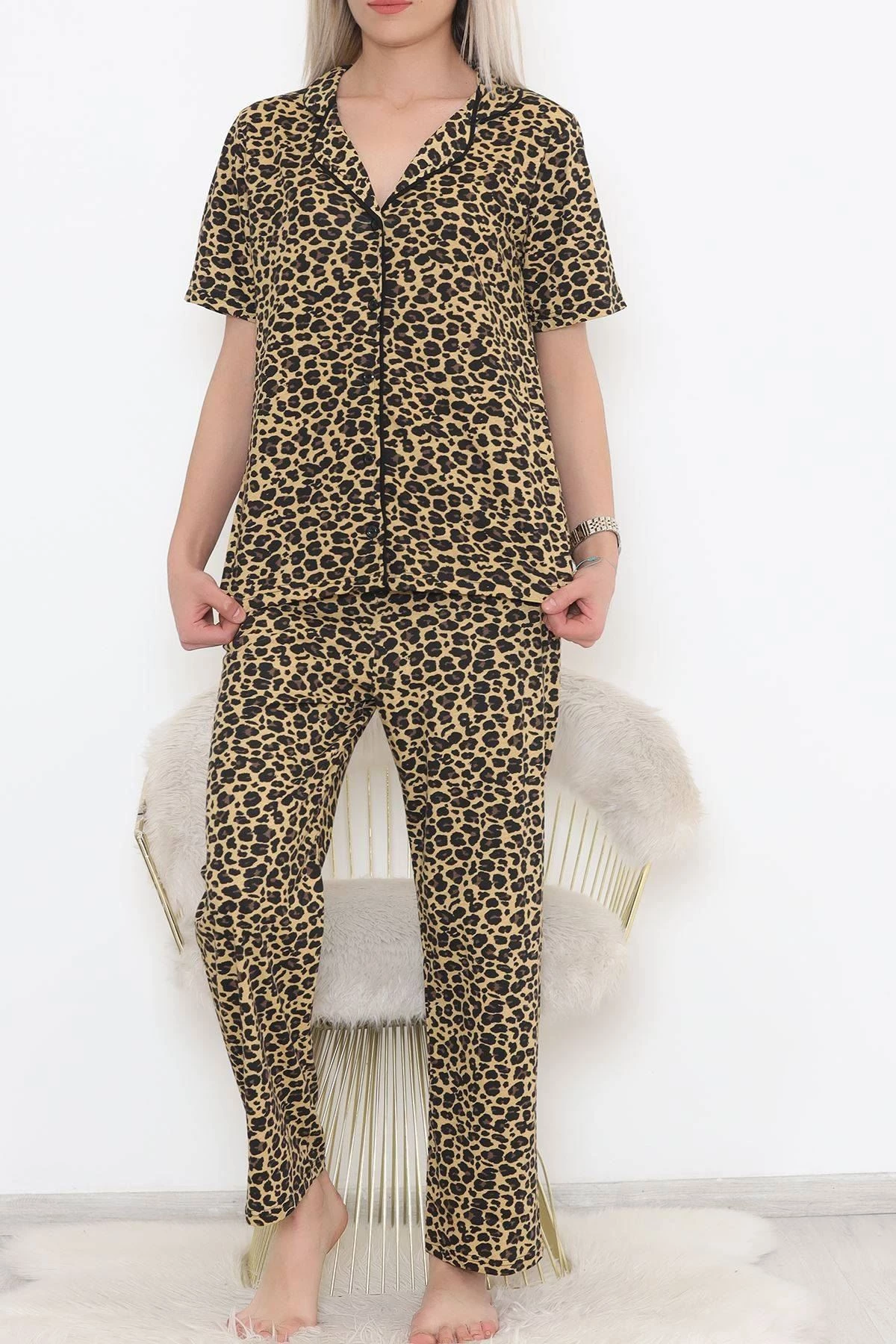 Düğmeli Pijama Takımı Leopar - 11449.102. XL