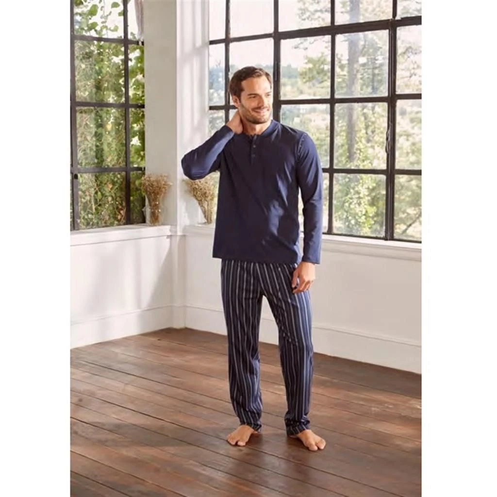 Needion - Erkek Lacivert Altı Çizgili Pijama Takımı Ese27064 Lacivert L
