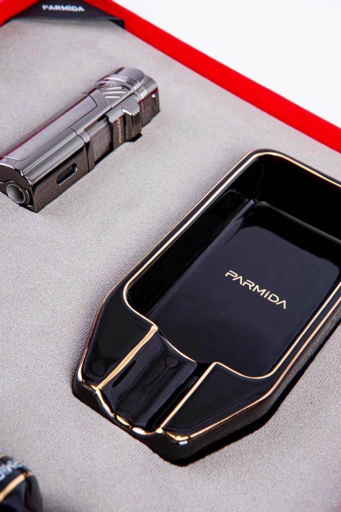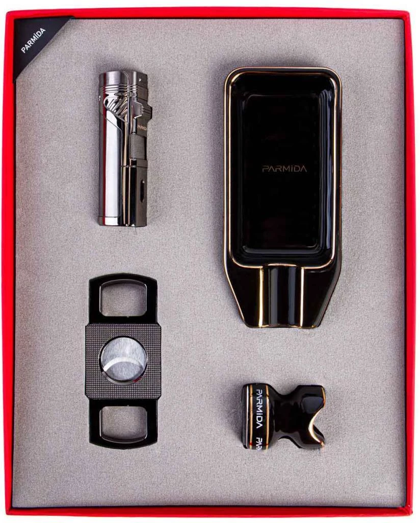 Parmida Siyah Çakmak Küllük Kesici Tutucu Dörtlü Puro Seti