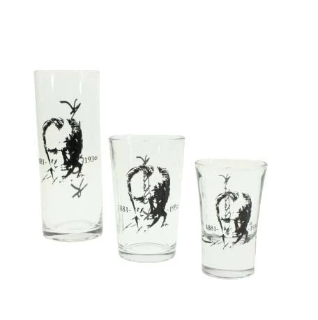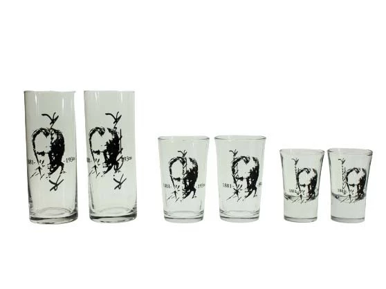 TÜM BARDAKLAR DA ATATÜRK SİLÜETİ VE İMZASI VARDIR.