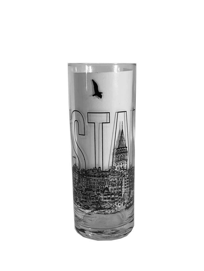 İstanbul Silüet ve İstanbul Yazılı Rakı Bardağı 2'li Cam Bardak Renkli