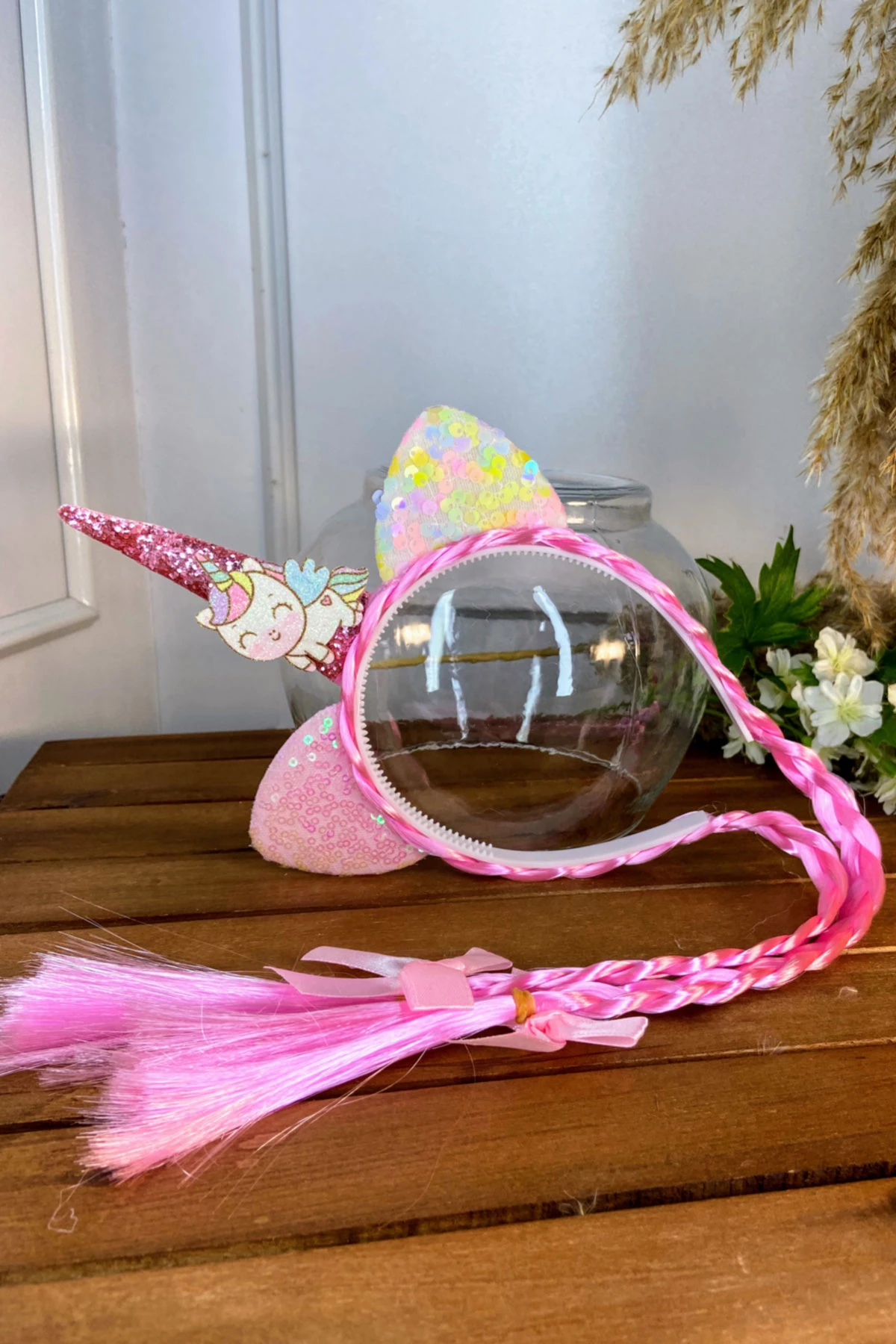 Unicorn Figürlü Örgü Saçlı Taç Pudra SBT488