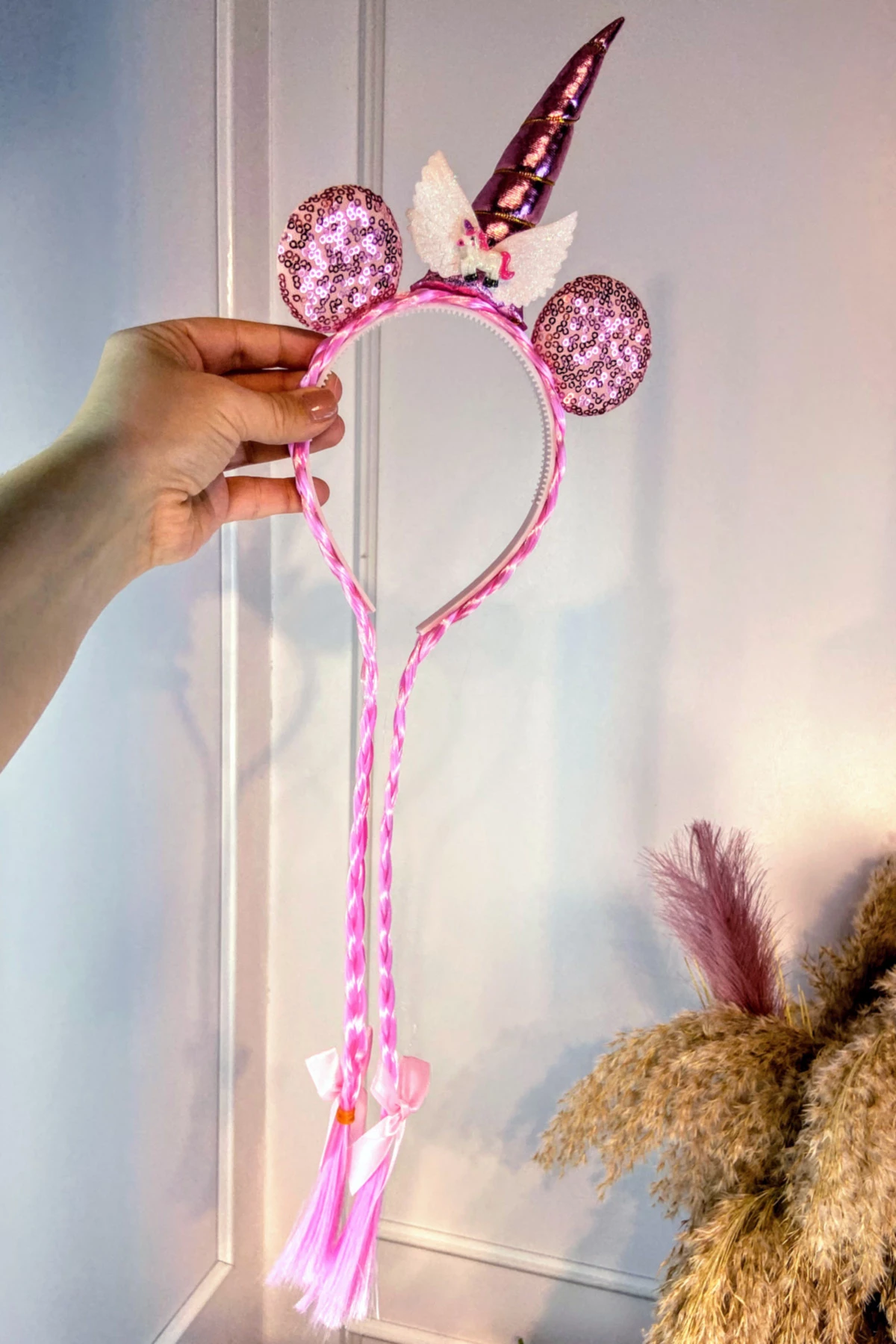 Unicorn Figürlü Örgü Saçlı Taç Pudra SBT493