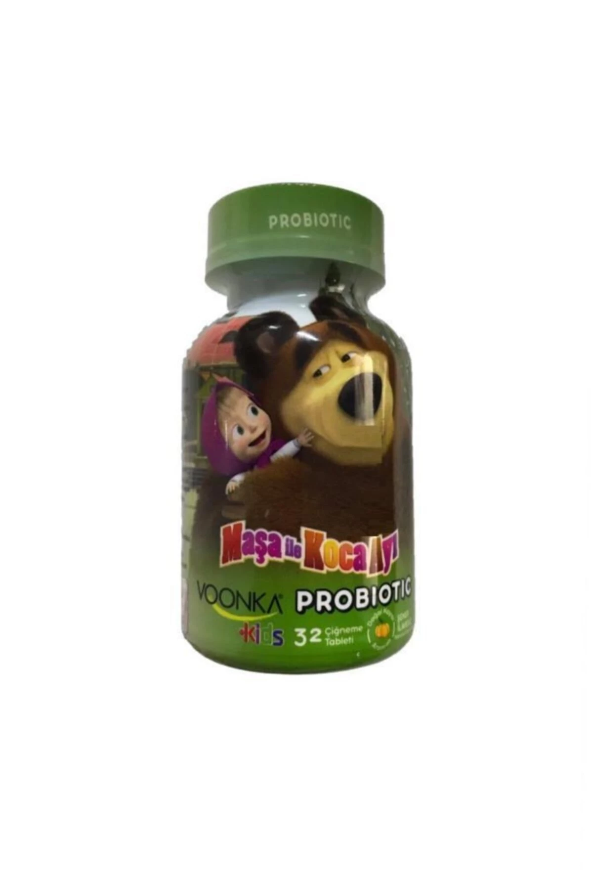 Voonka Kids Maşa ve Koca Ayı Probiotik Kayısı Aromalı 32 Çiğneme Tableti
