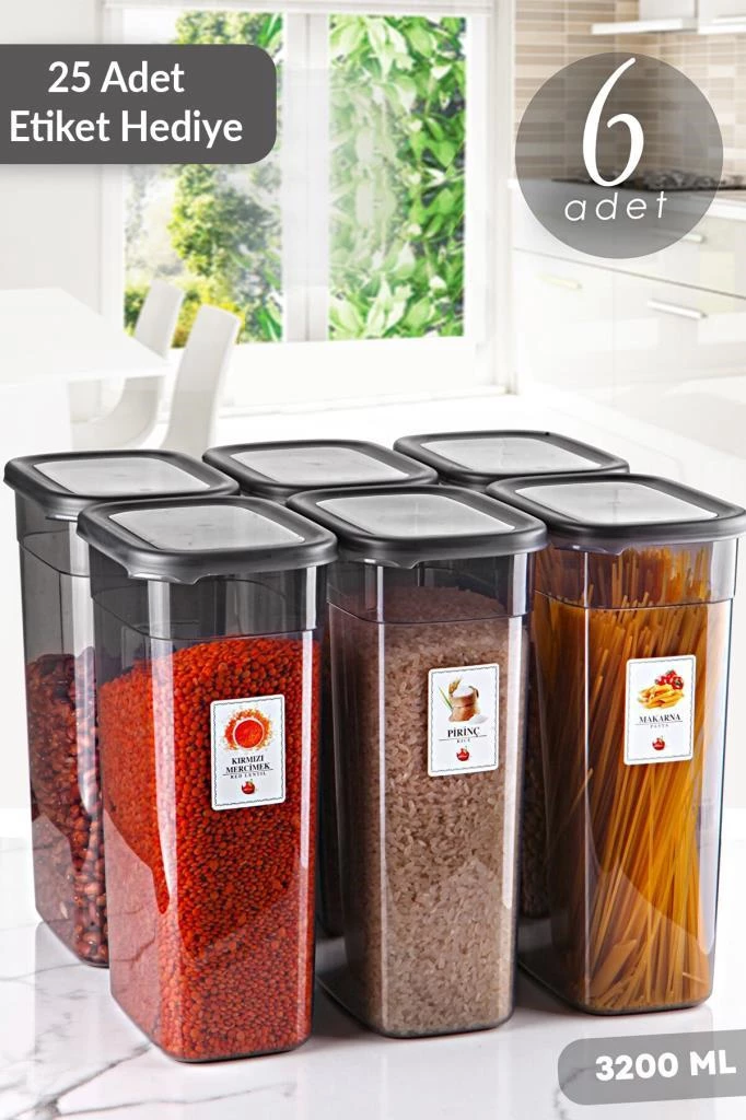 Paket İçeriği : 6 Adet 3.2 Litre Saklama Kabı Seti ve 25 Adet Saklama ve Baharat Etiketi