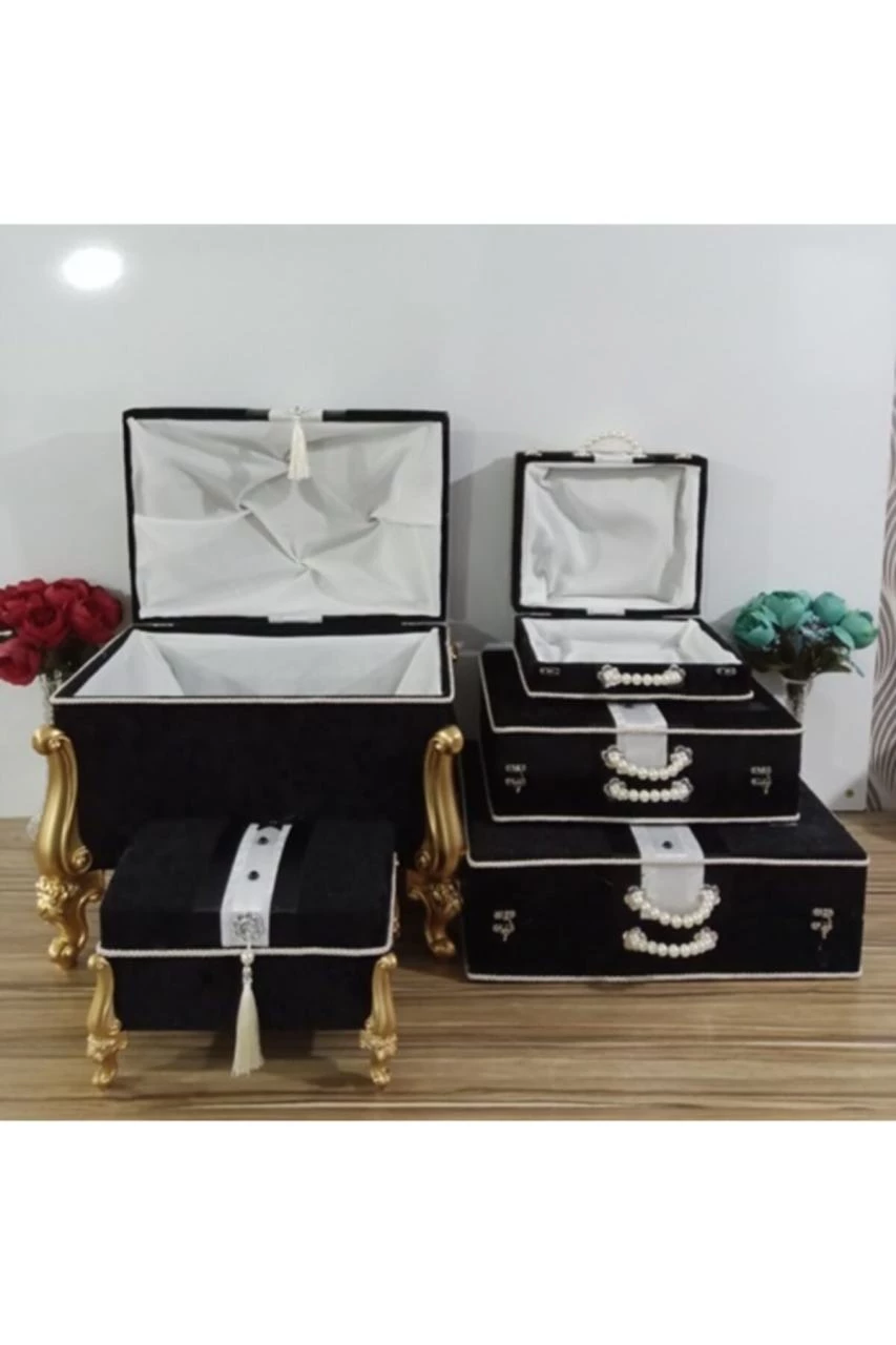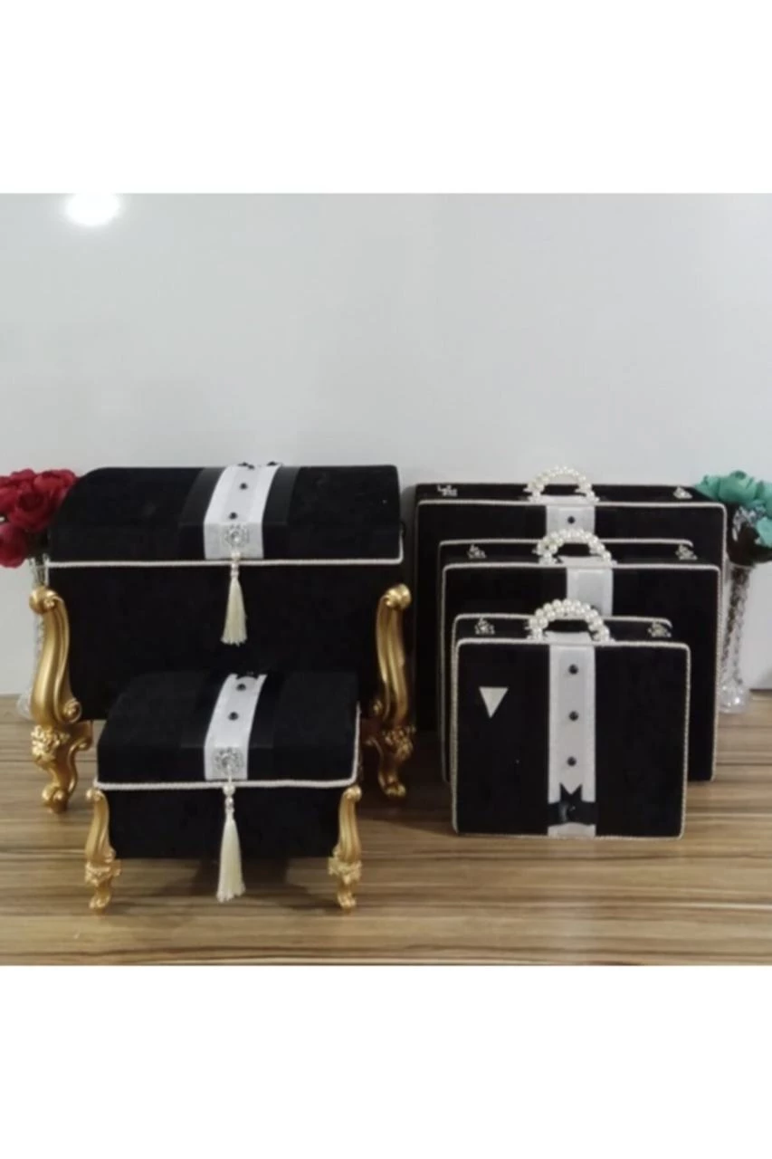 Needion - Söz Nişan Bohça Düğün Damat Çeyiz Sandığı 5li 0568 Siyah