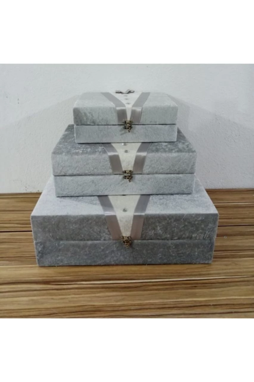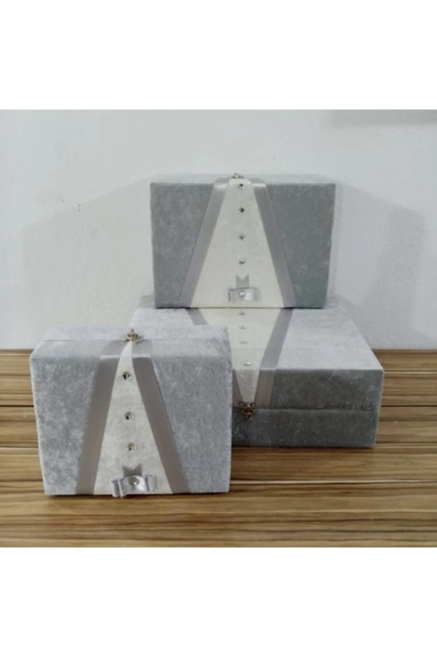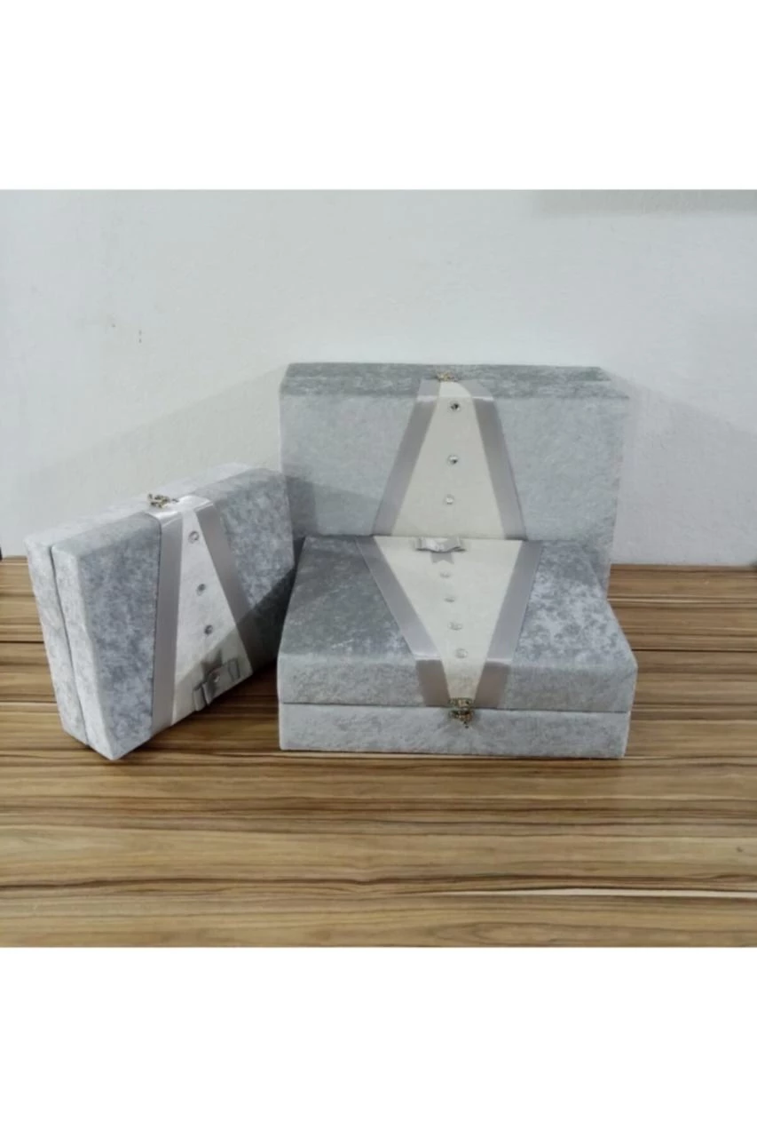 Needion - Söz Nişan Bohça Gelin Düğün Damat Çeyiz Sandık 3lü 0120 Gri