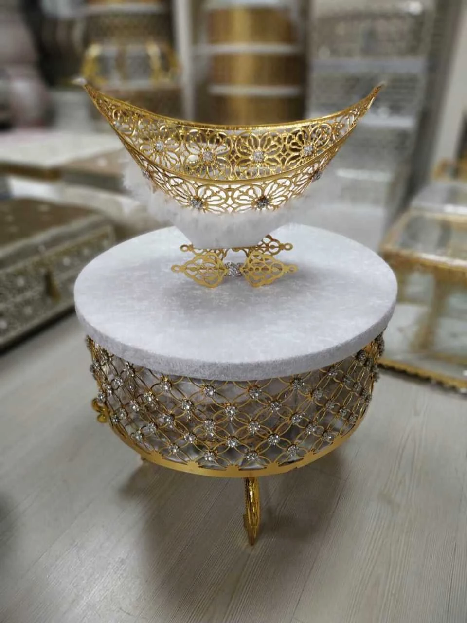 Yuvarlak Gold Metal Çeyiz Sandığı ve Gondol Set