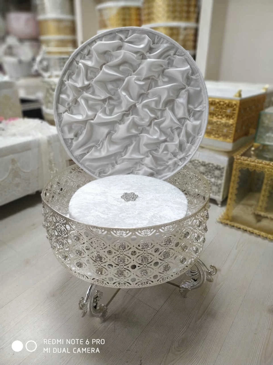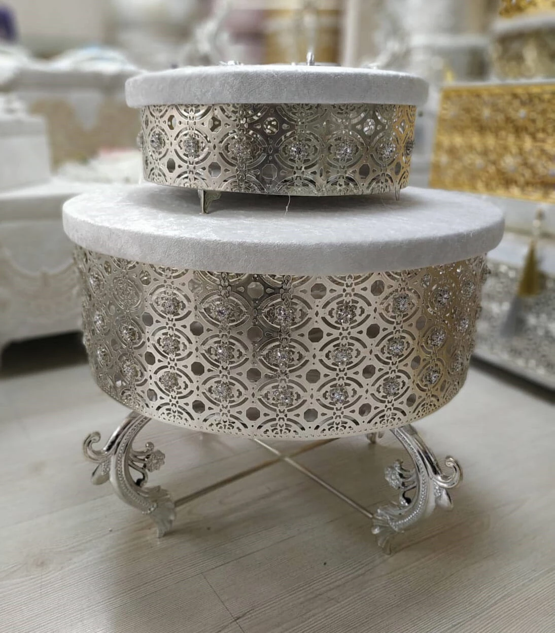 Yuvarlak Gümüş Metal Çeyiz Sandığı Makyaj Kutusu