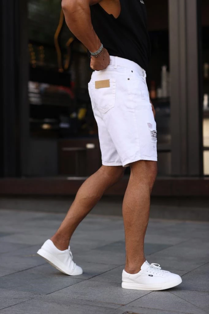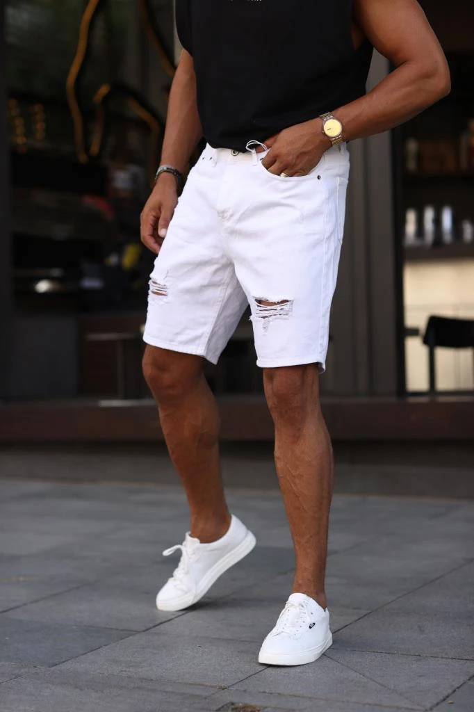• Erkek Yırtıklı Beyaz Şort