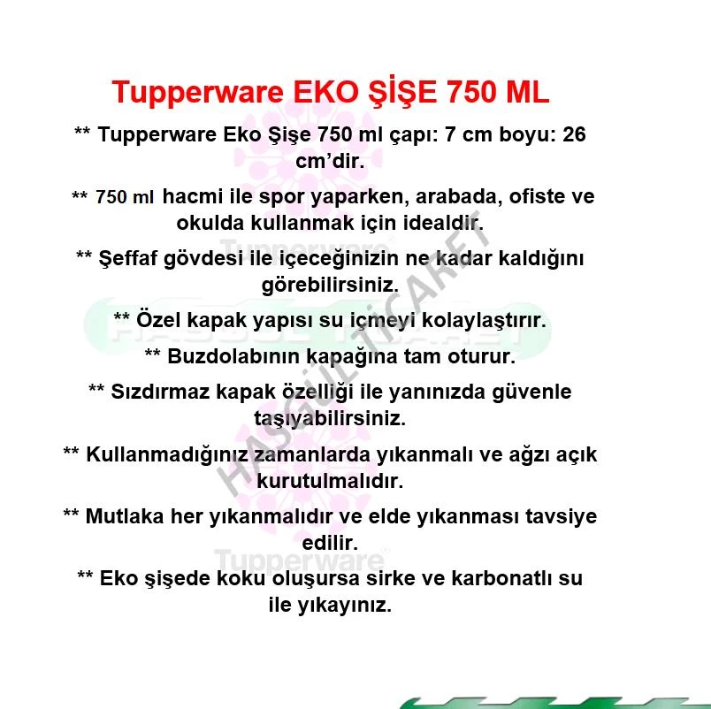 ** Su, ayran, meyve suları için idealdir. Fakat ayrı Eko Şişeler kullanılması önerilir.